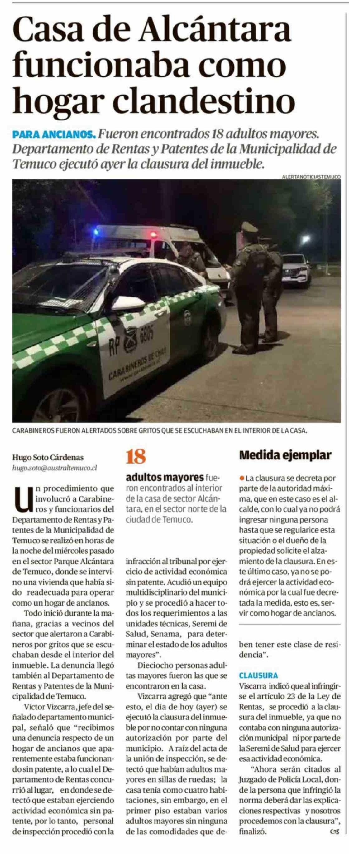 Casa de Alcántara funcionaba como hogar clandestino 10-04-2026 El Austral de la Araucanía |