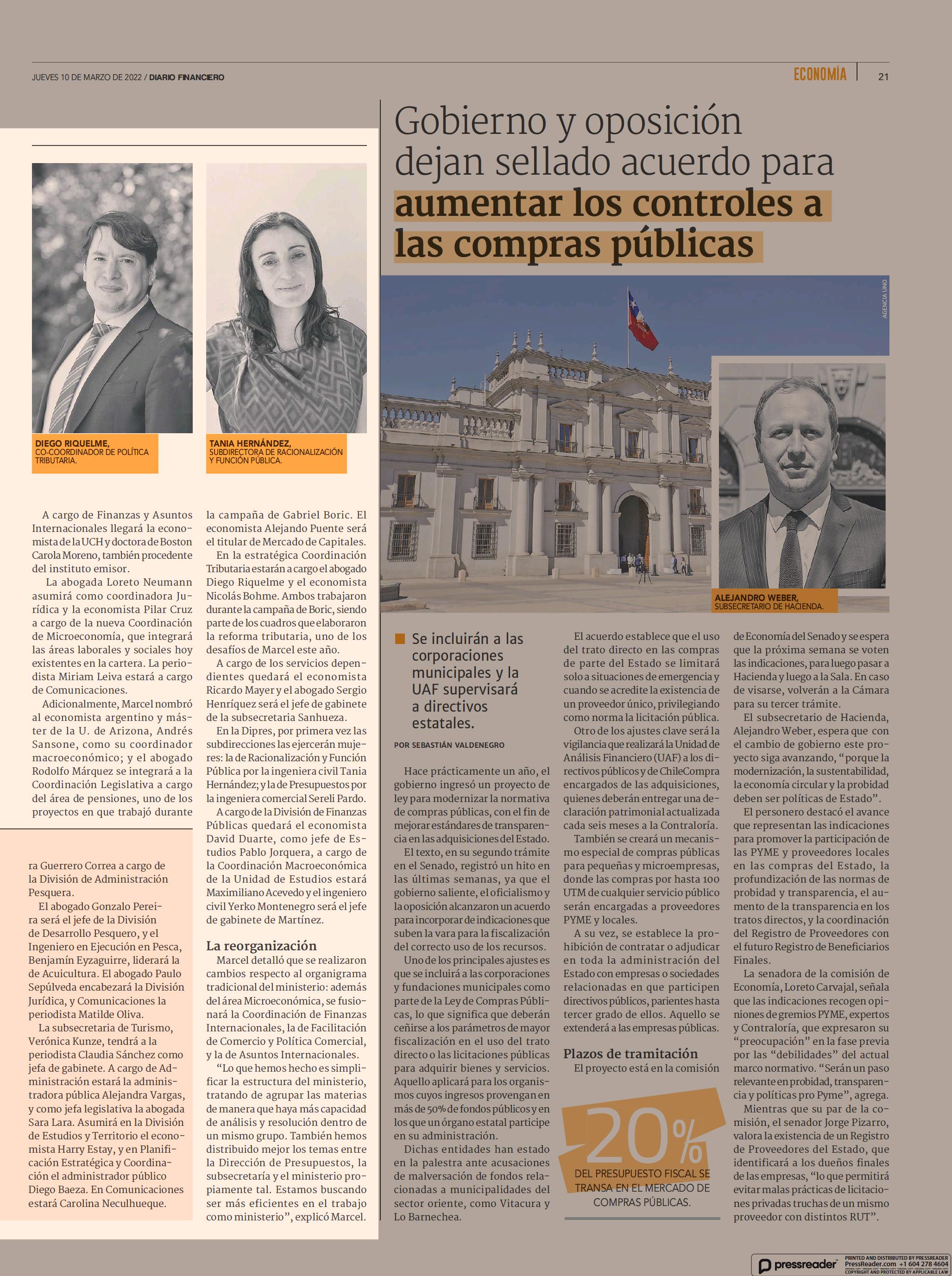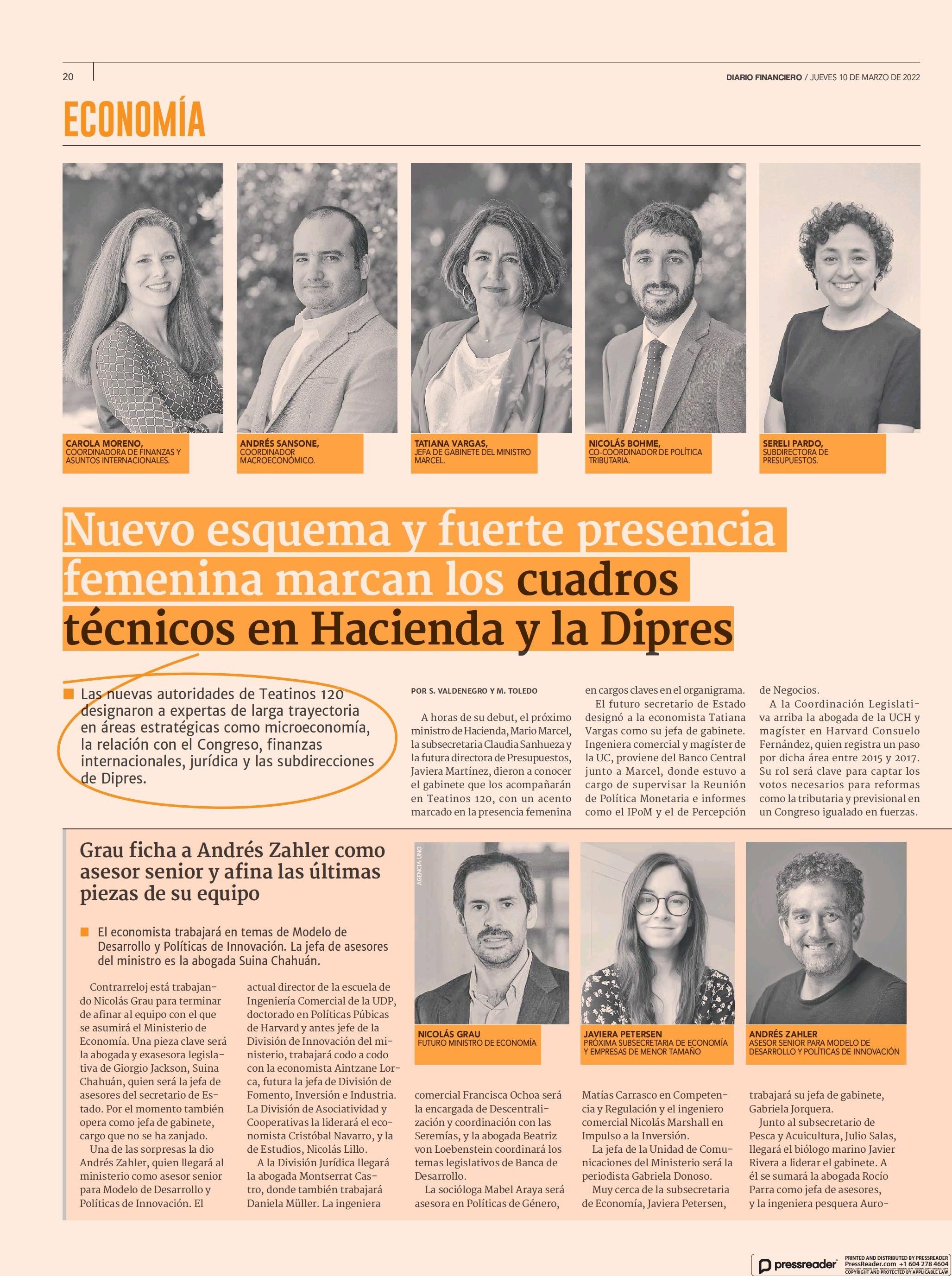 Cuadros técnicos en Hacienda y la Dipres 10-03-2022 Diario Financiero |