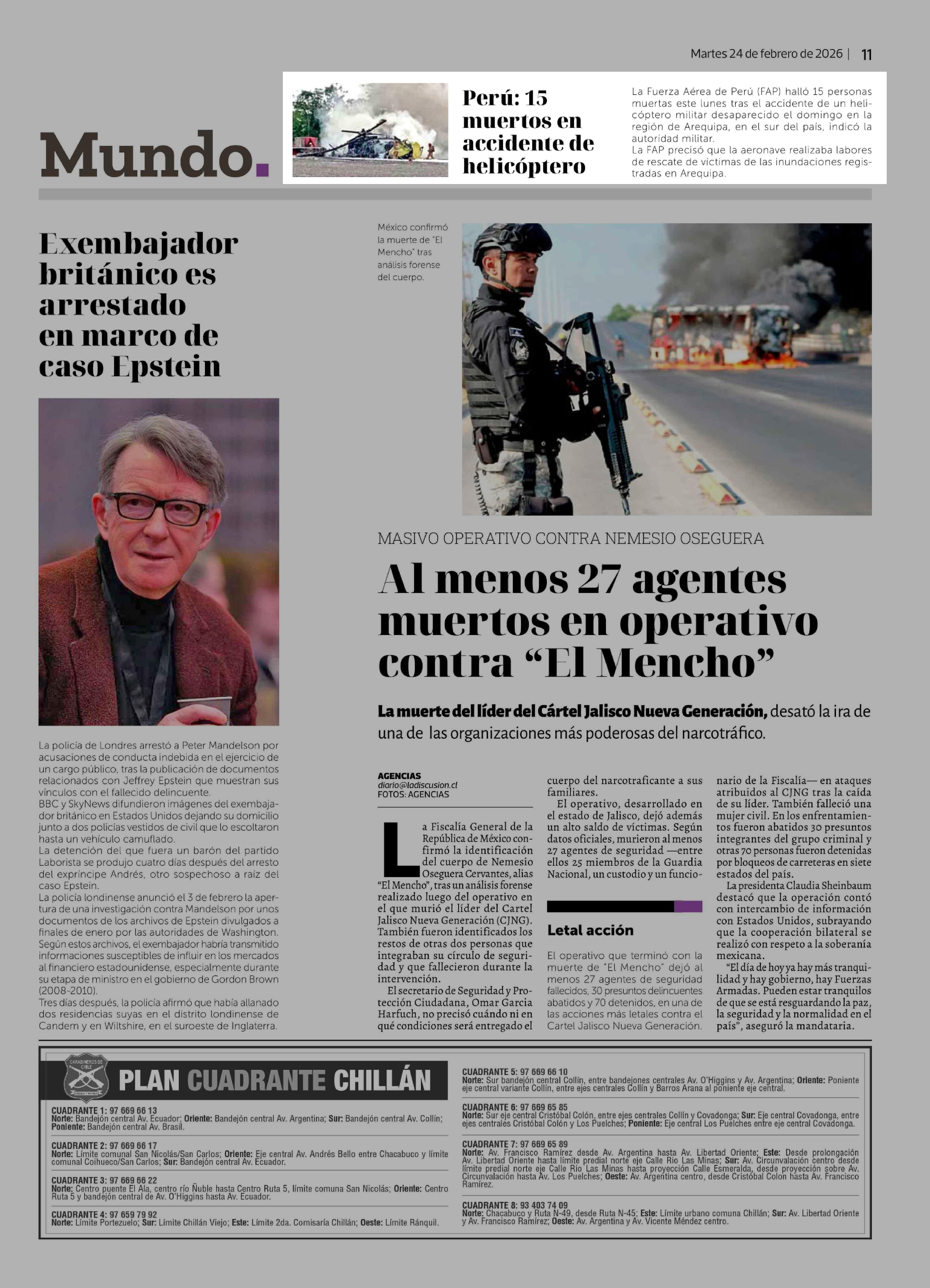 Perú: 15 muertos en accidente de helicóptero 24-02-2026 La Discusión |