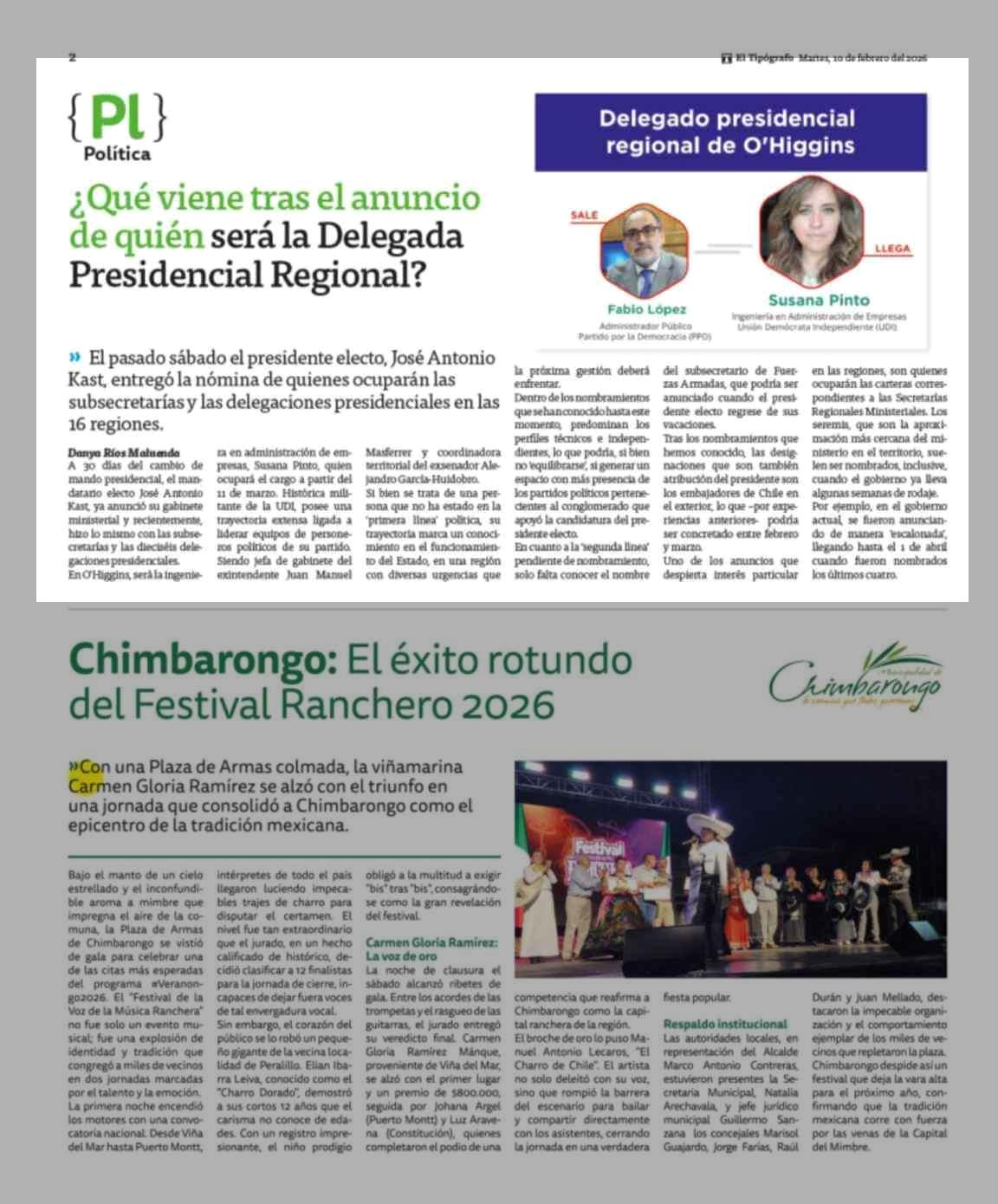 ¿Qué viene tras el anuncio de quién será la Delegada Presidencial Regional? 10-02-2026 El Tipógrafo |
