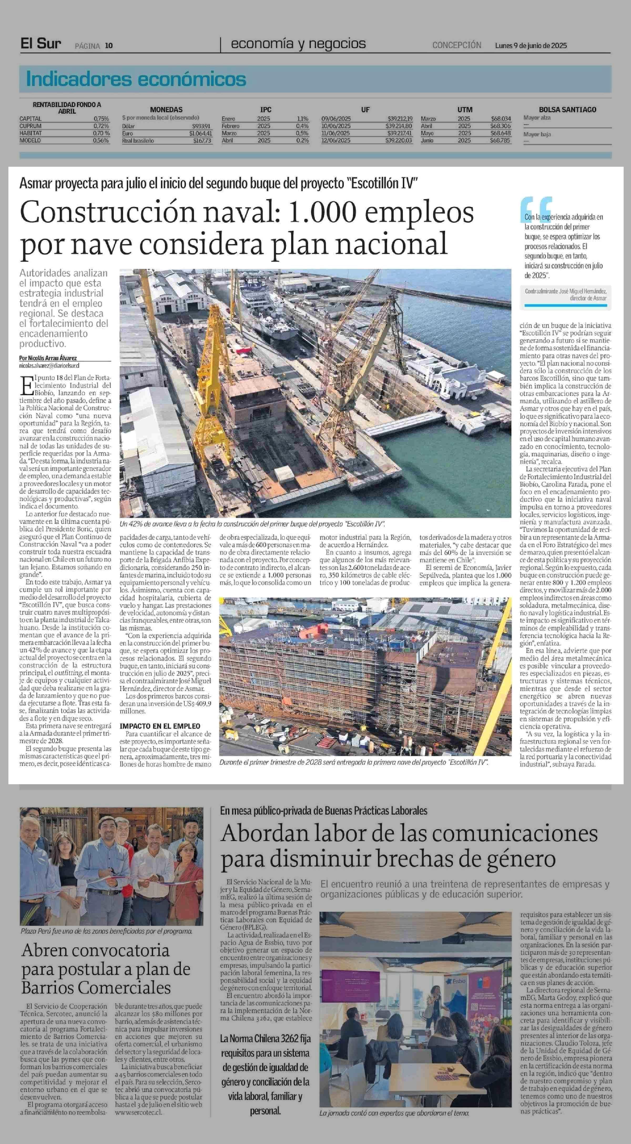 Construcción naval: 1.000 empleos por nave considera plan nacional 09-06-2025 El Sur |