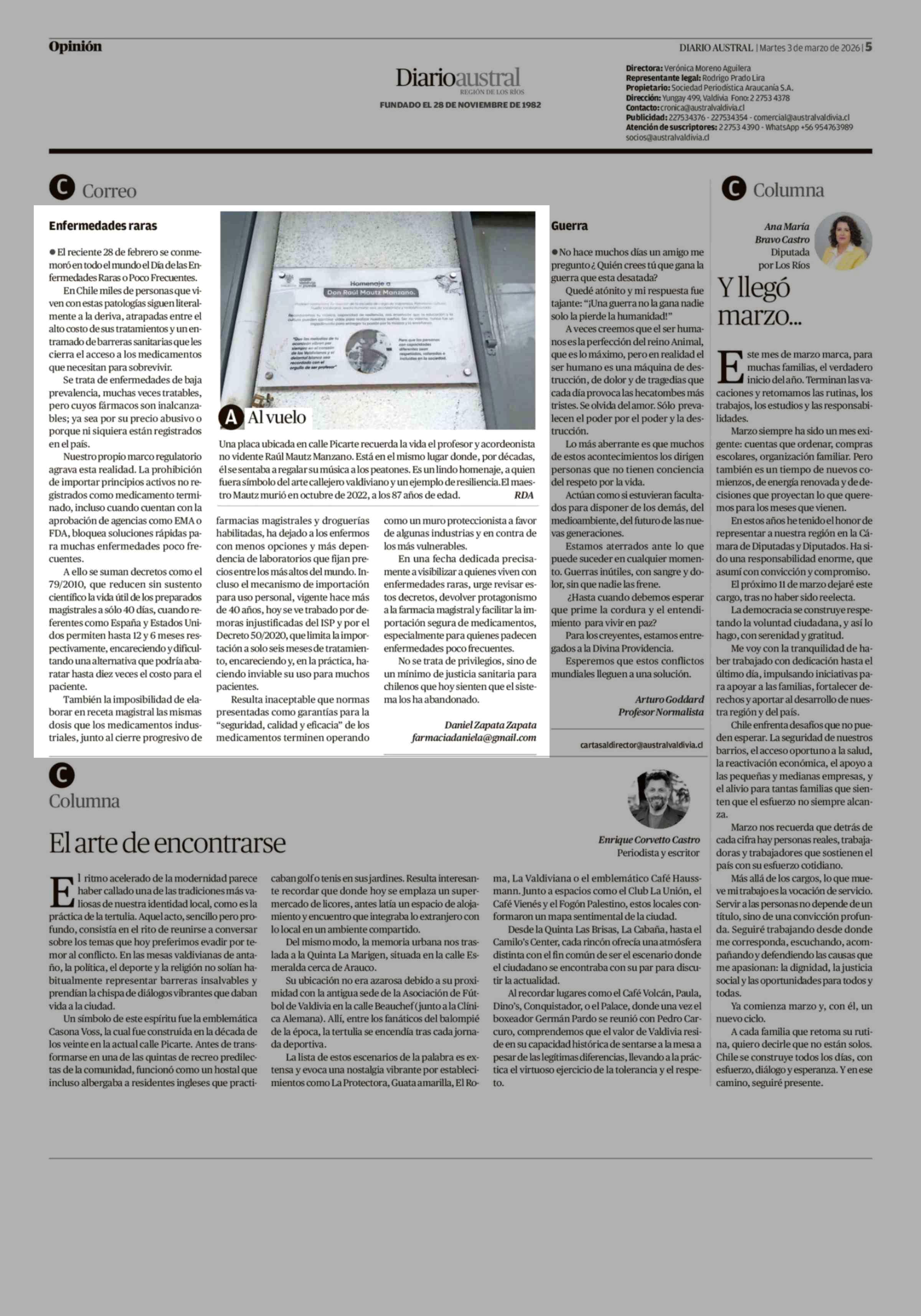 03-03-2026 Diario Austral Región de Los Ríos