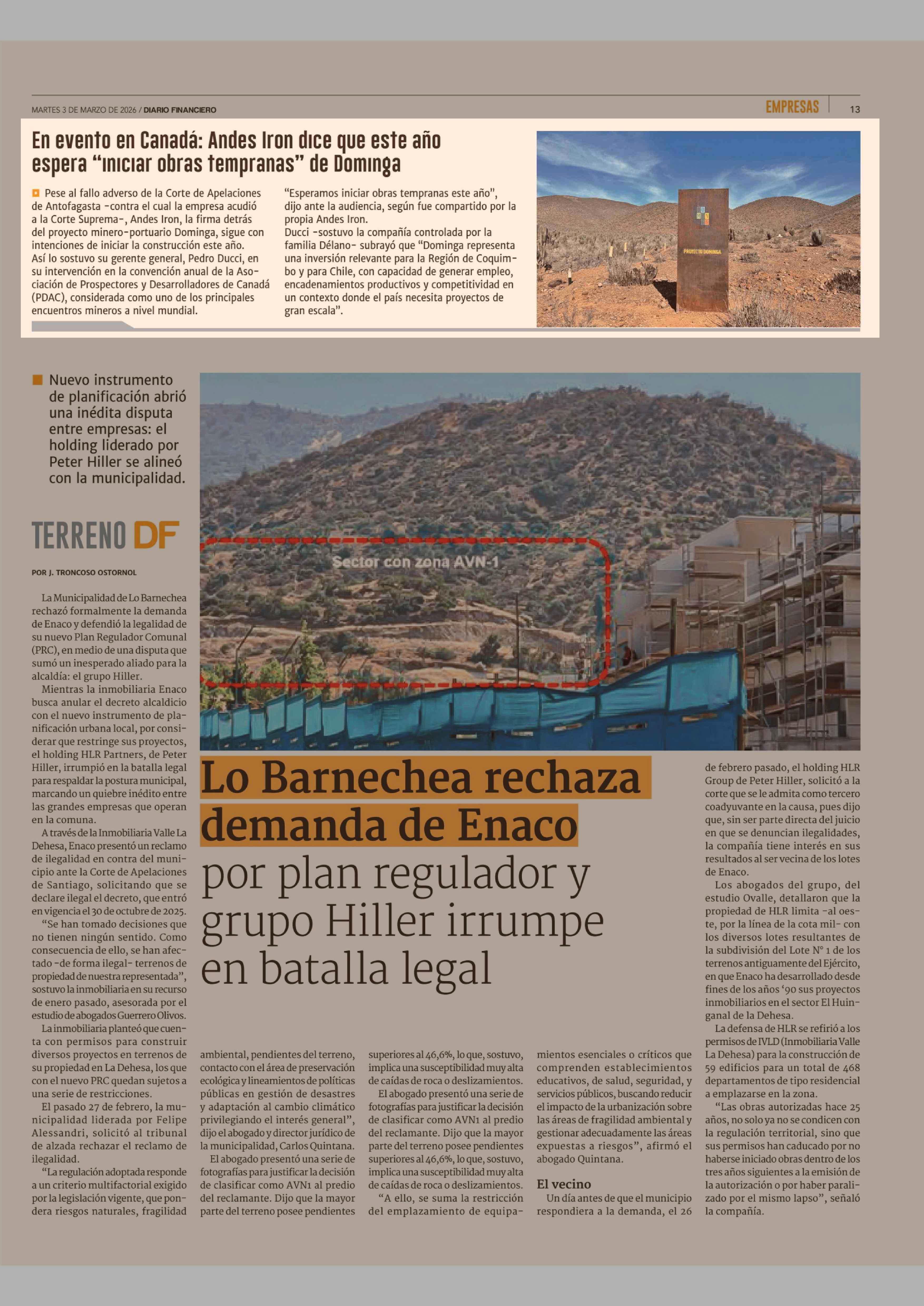 En evento en Canadá: Andes Iron dice que este año espera "Iniciar obras tempranas" de Dominga 03-03-2026 Diario Financiero |