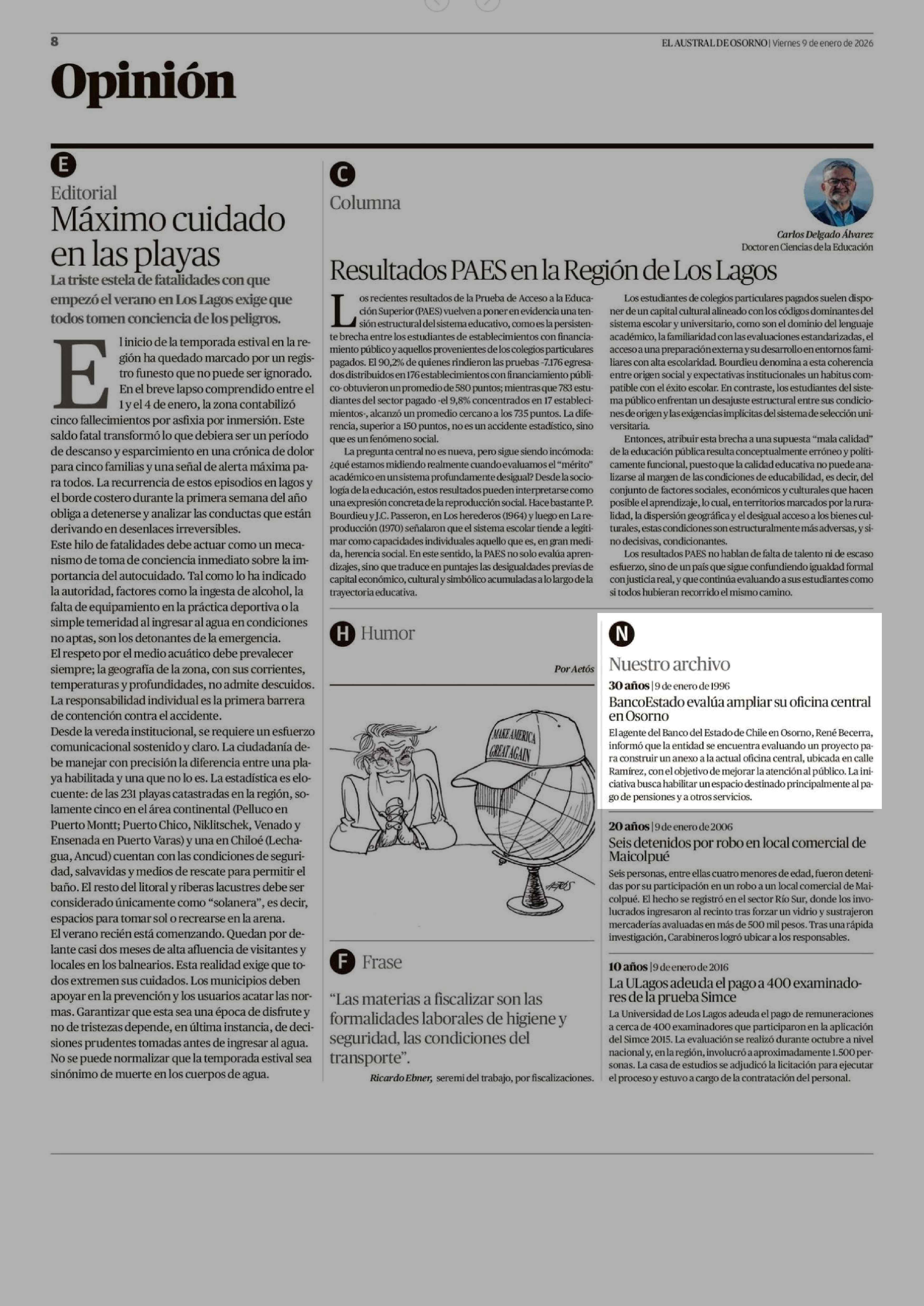 | Fecha: | 09-01-2026 | Sector: | Noticia general | Región: | Región de Los Lagos |