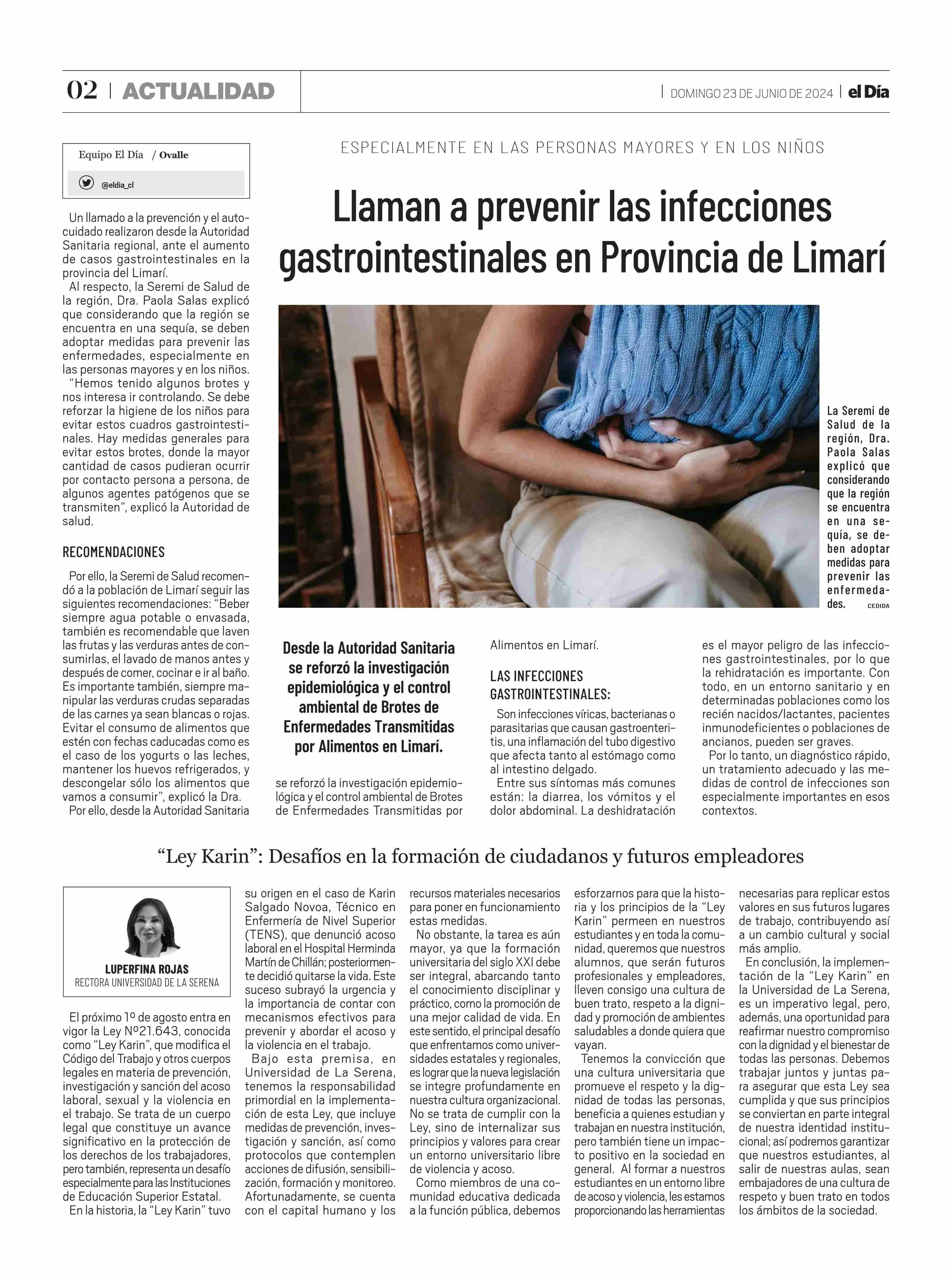 “Ley Karin”: Desafíos en la formación de ciudadanos y futuros empleadores 23-06-2024 El Día |