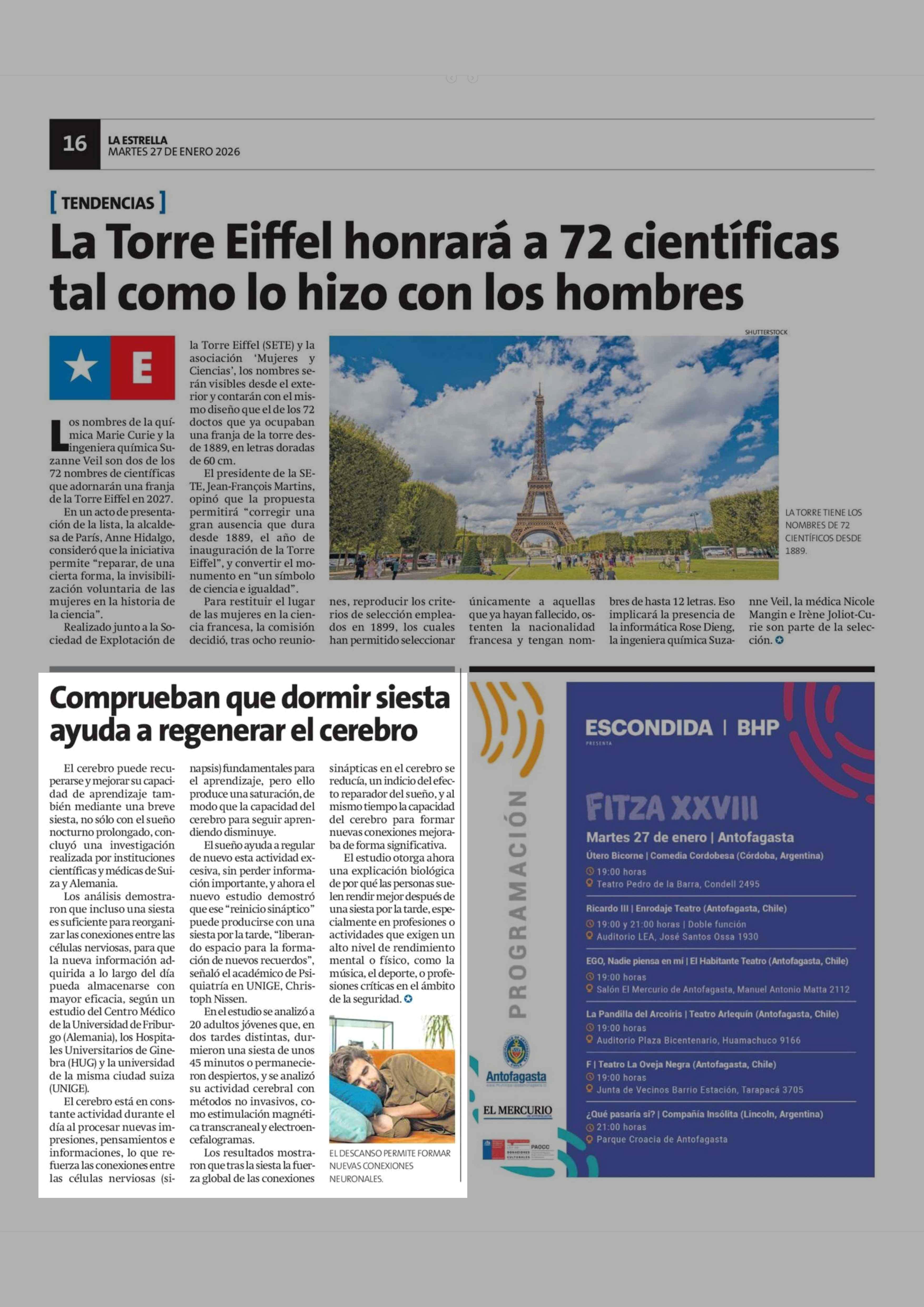 Comprueban que dormir siesta ayuda a regenerar el cerebro 27-01-2026 La Estrella de Antofagasta |