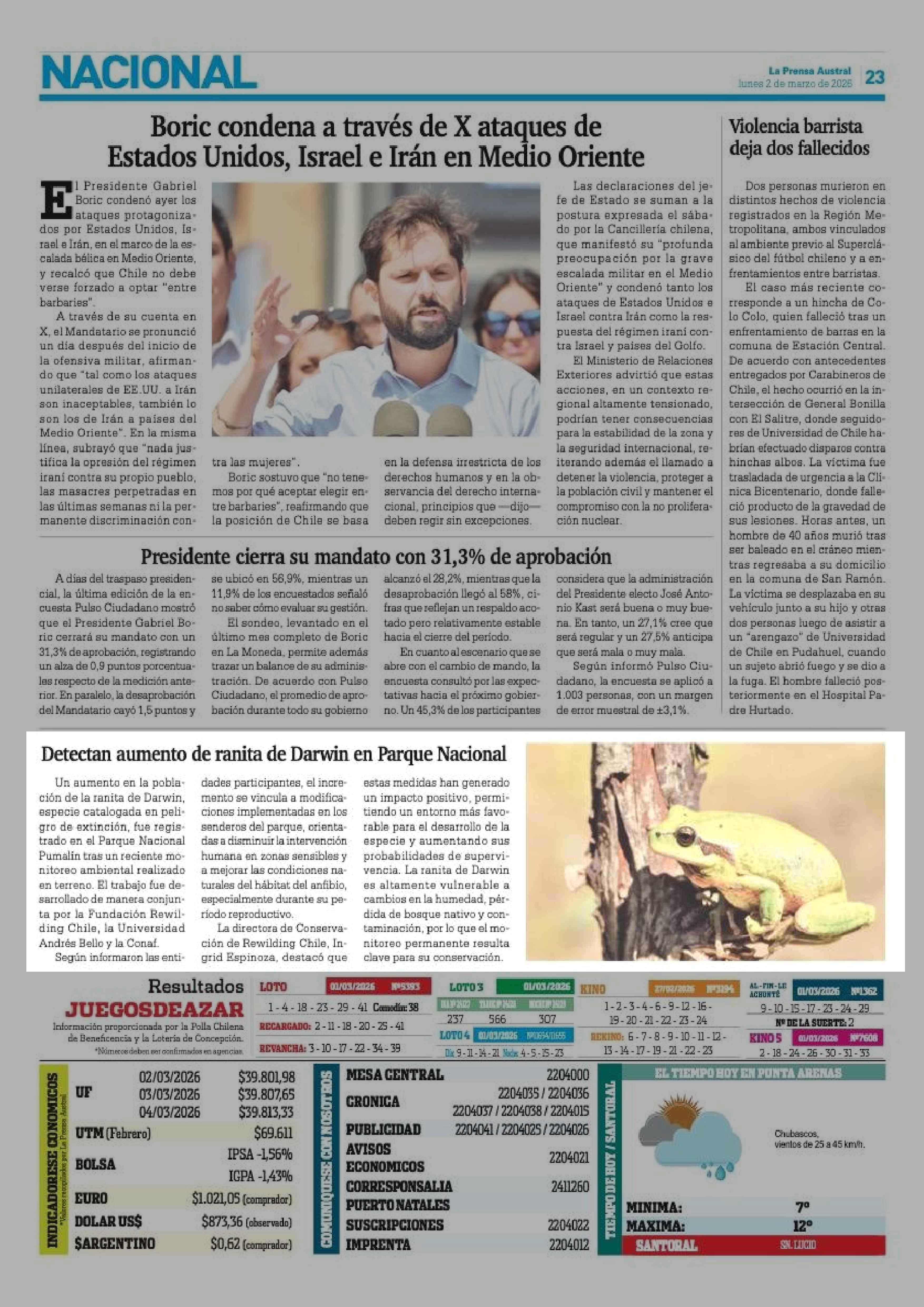 | Fecha: | 02-03-2026 | Sector: | Noticia general | Región: | Región de Magallanes y de la Antártica Chilena |