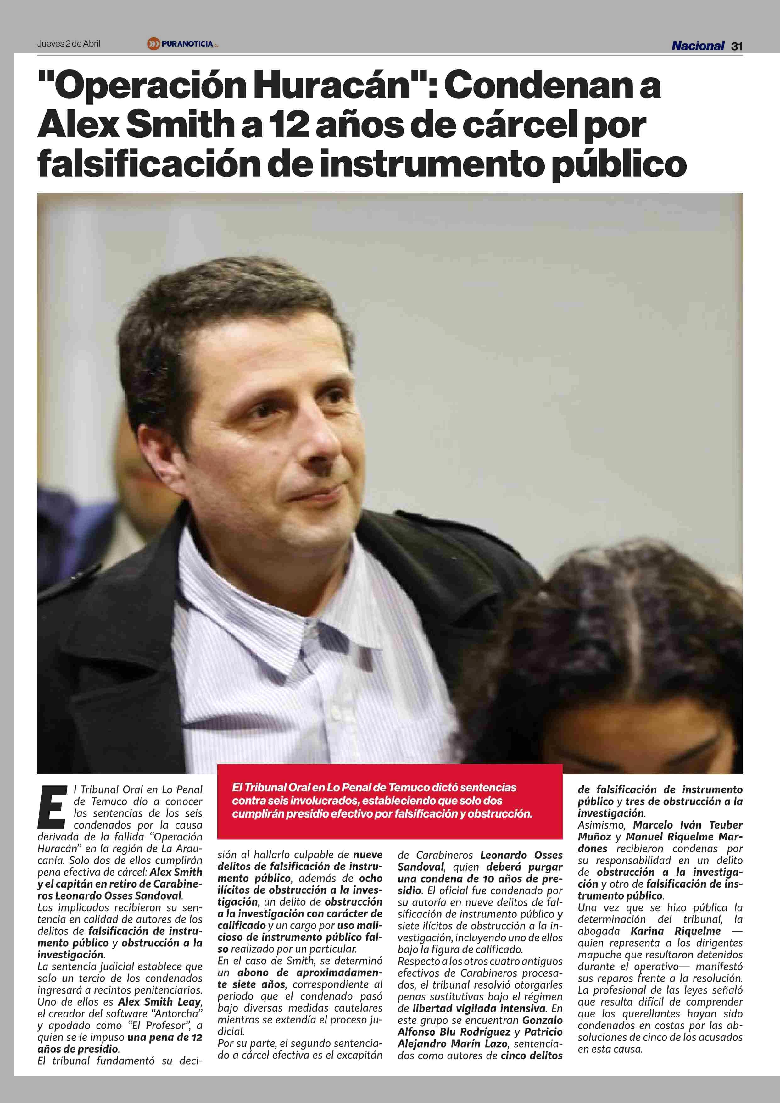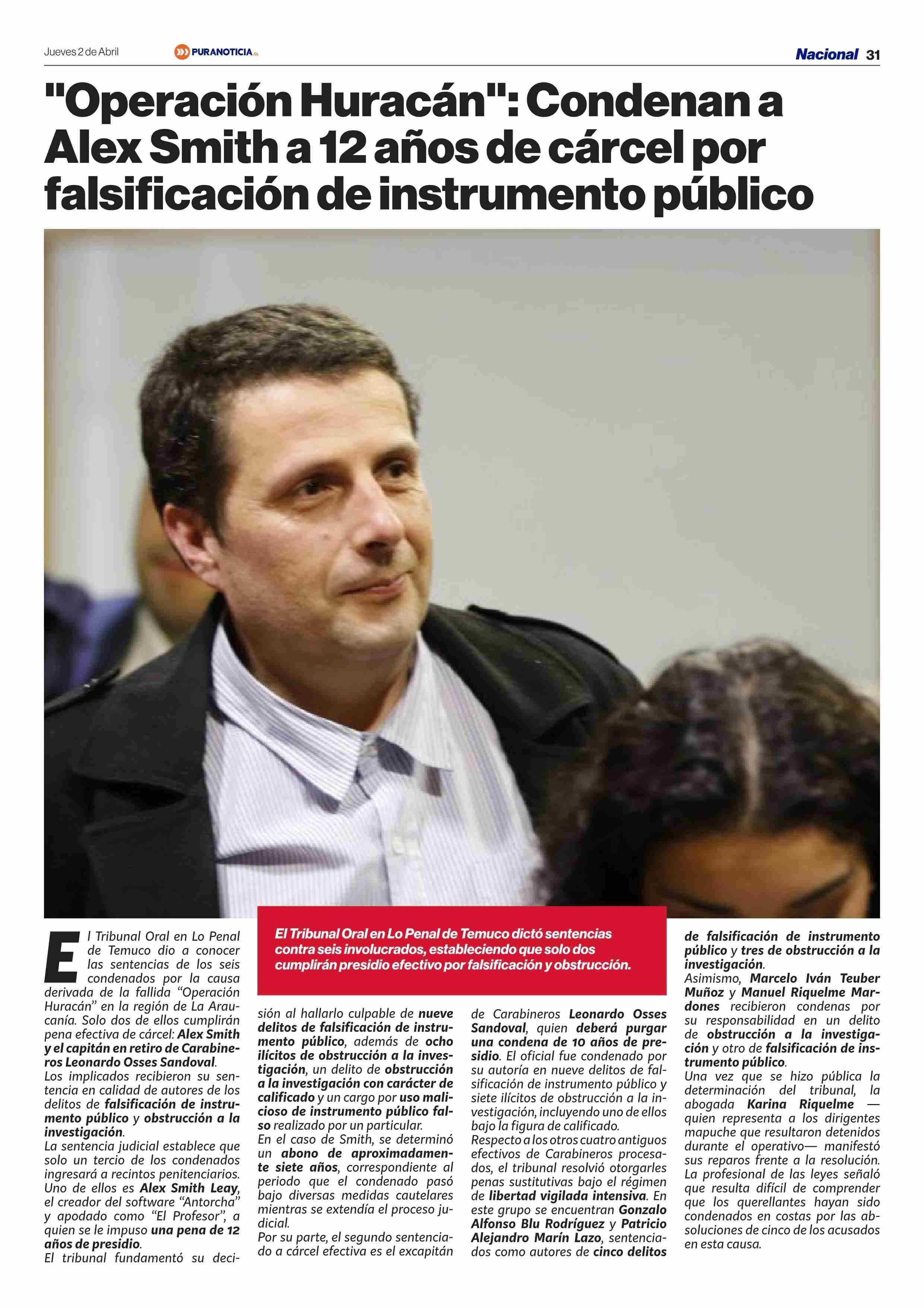 "Operación Huracán": Condenana Alex Smith a 12 años de cárcel por falsificación de instrumento público 02-04-2026 Puranoticia.cl |
