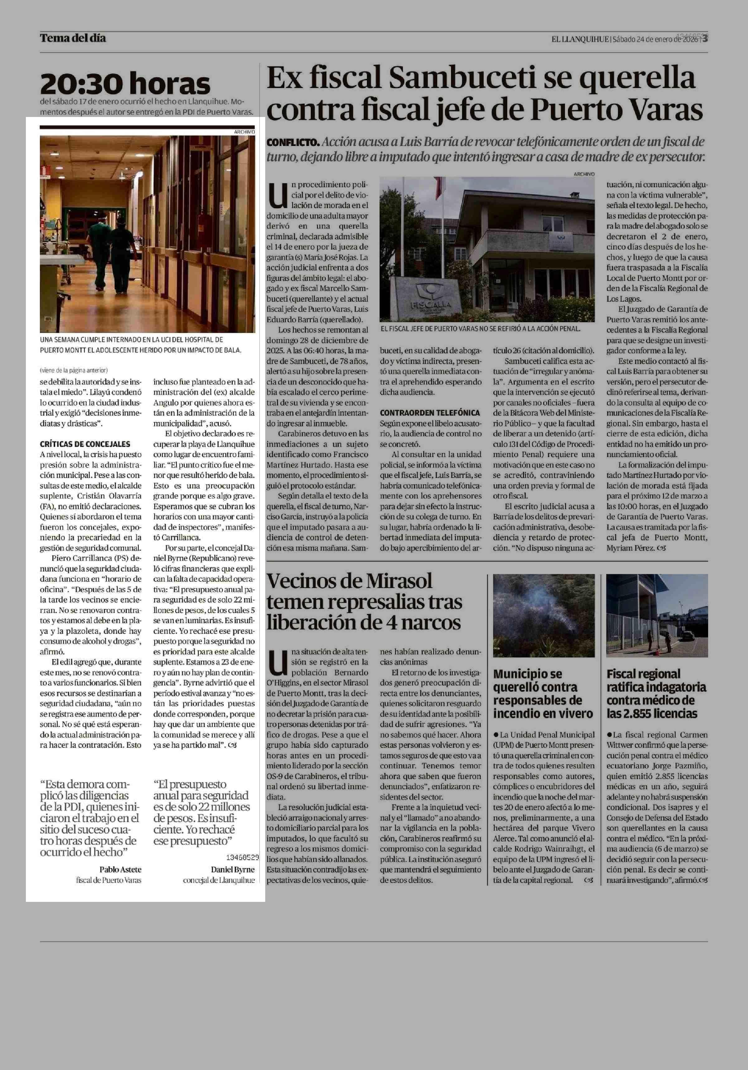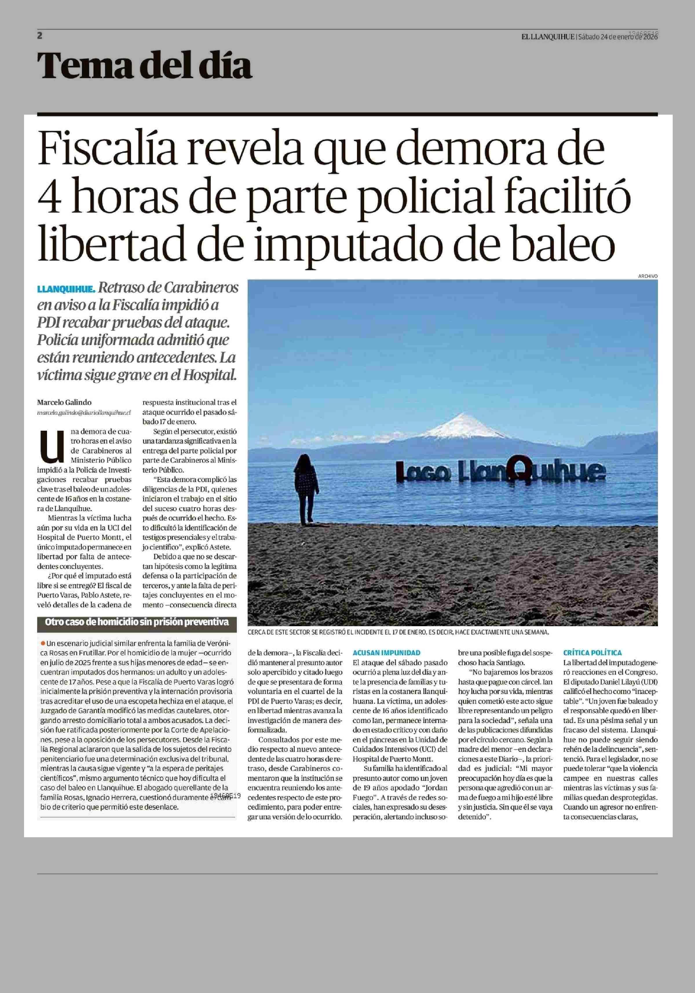 Fiscalía revela que demora de 4 horas de parte policial facilitó libertad de imputado de baleo 24-01-2026 El Llanquihue |
