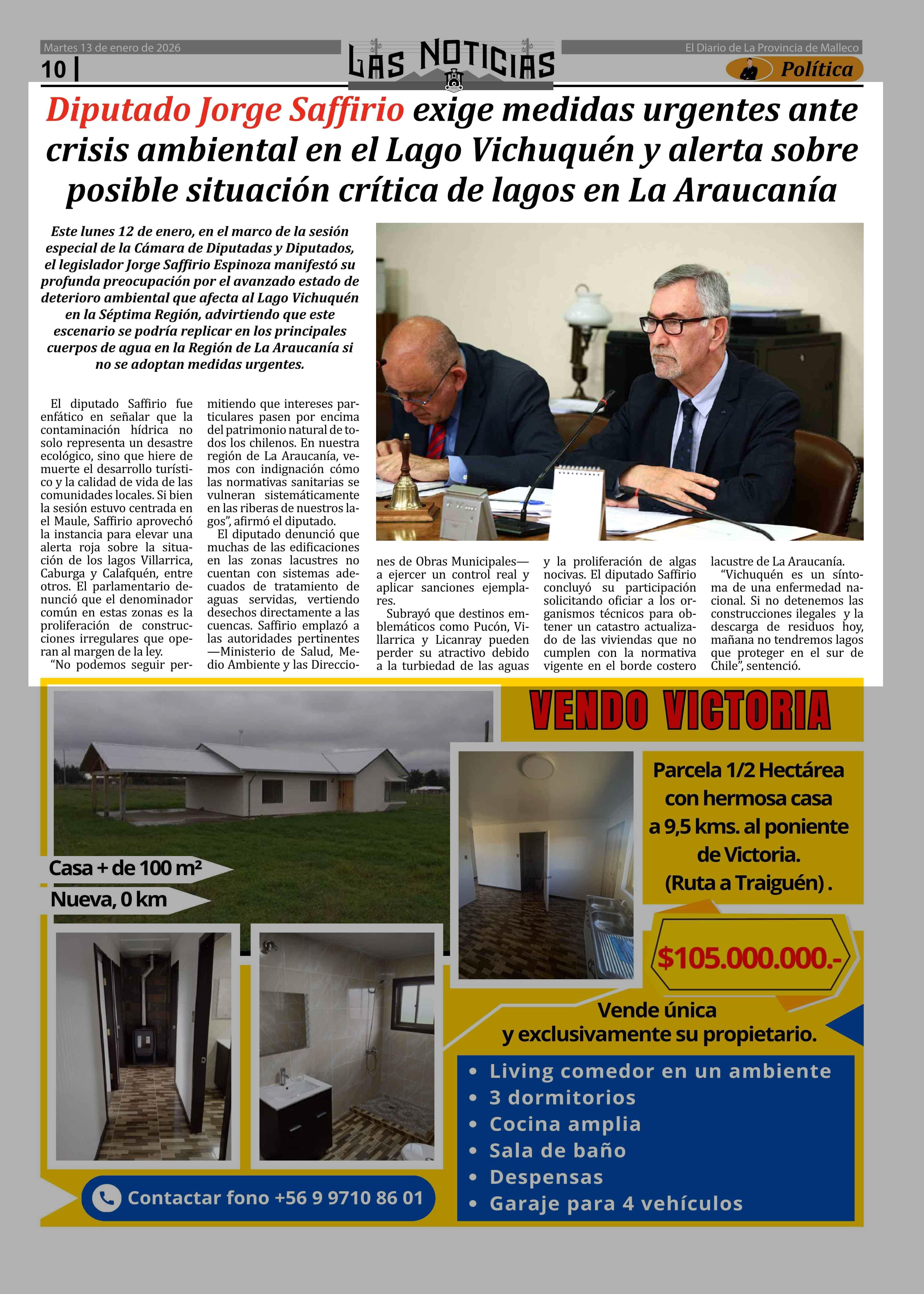 Título: Diputado Jorge Saffirio exige medidas urgentes ante crisis ambiental en el Lago Vichuquén y alerta sobre posible situación crítica de lagos en La Araucanía
