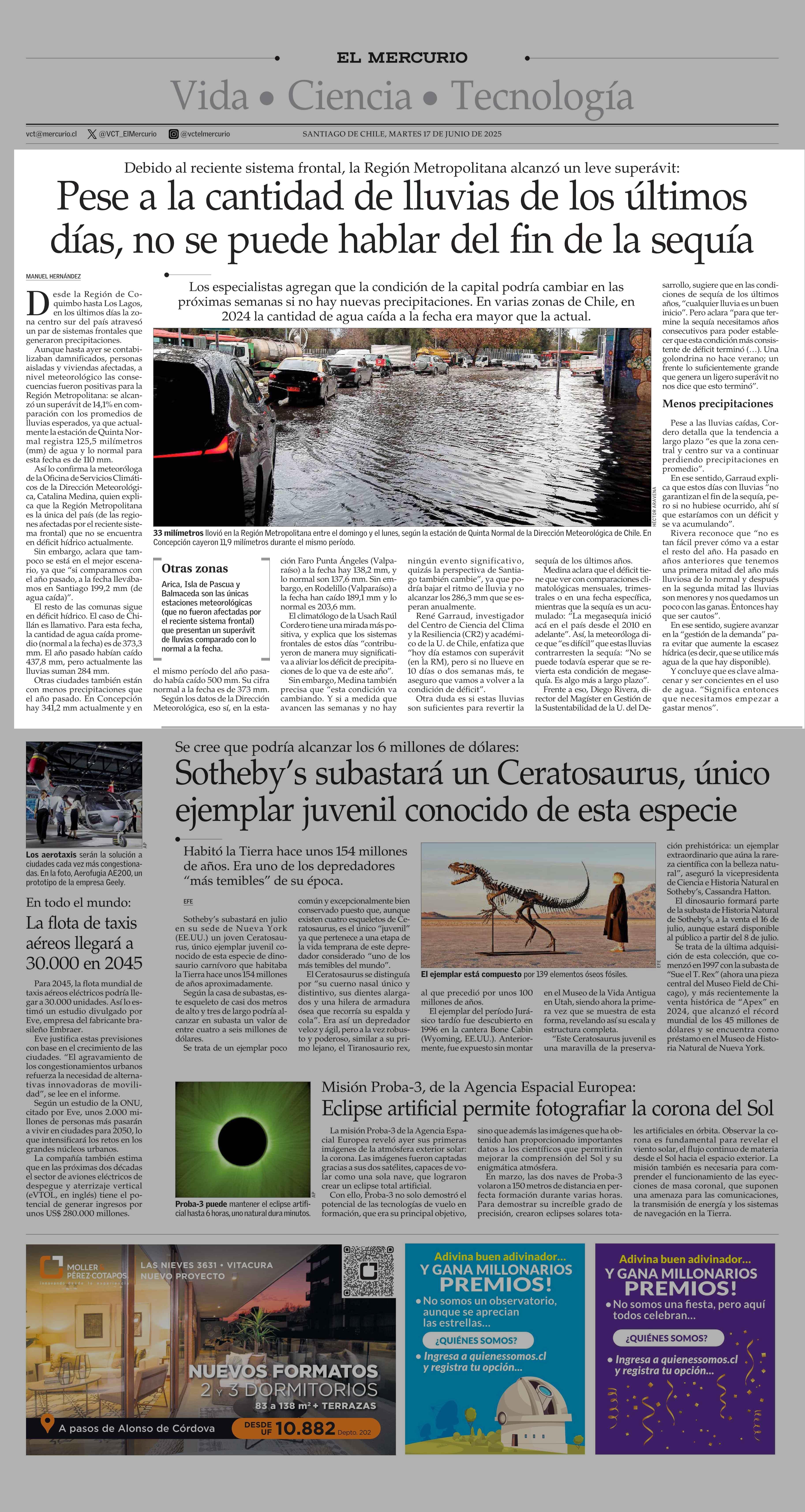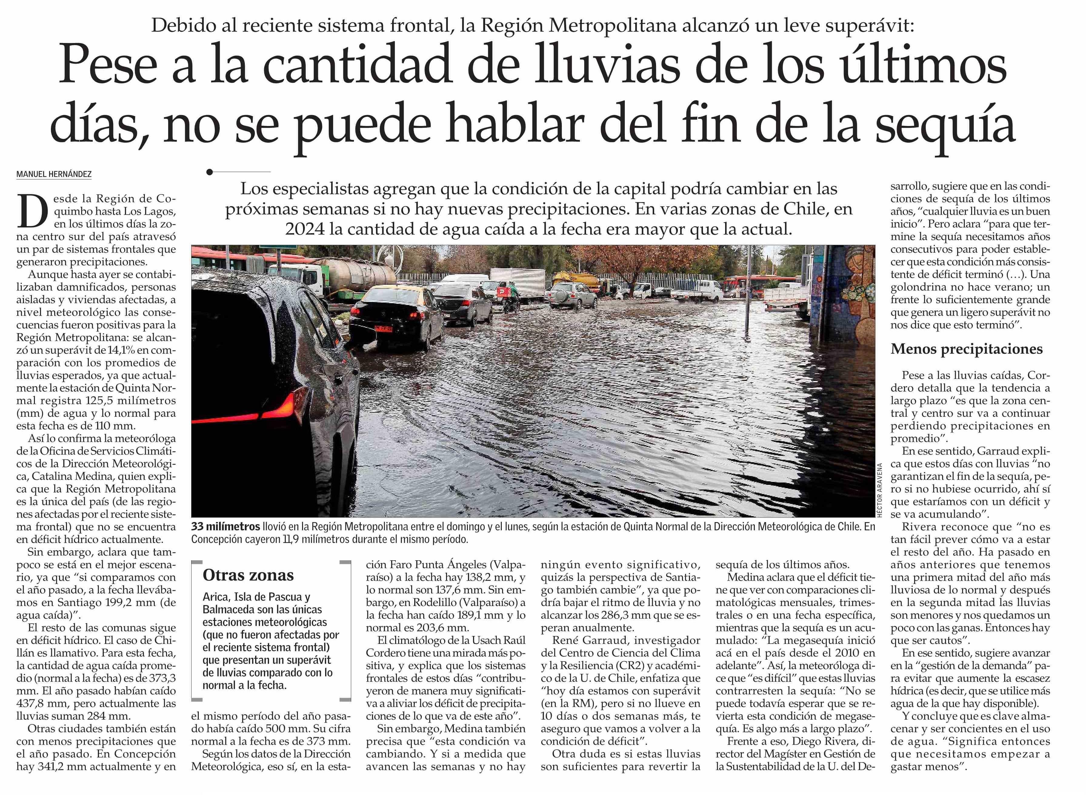 Pese a la cantidad de lluvias de los últimos días, no se puede hablar del fin de la sequía 17-06-2025 El Mercurio |