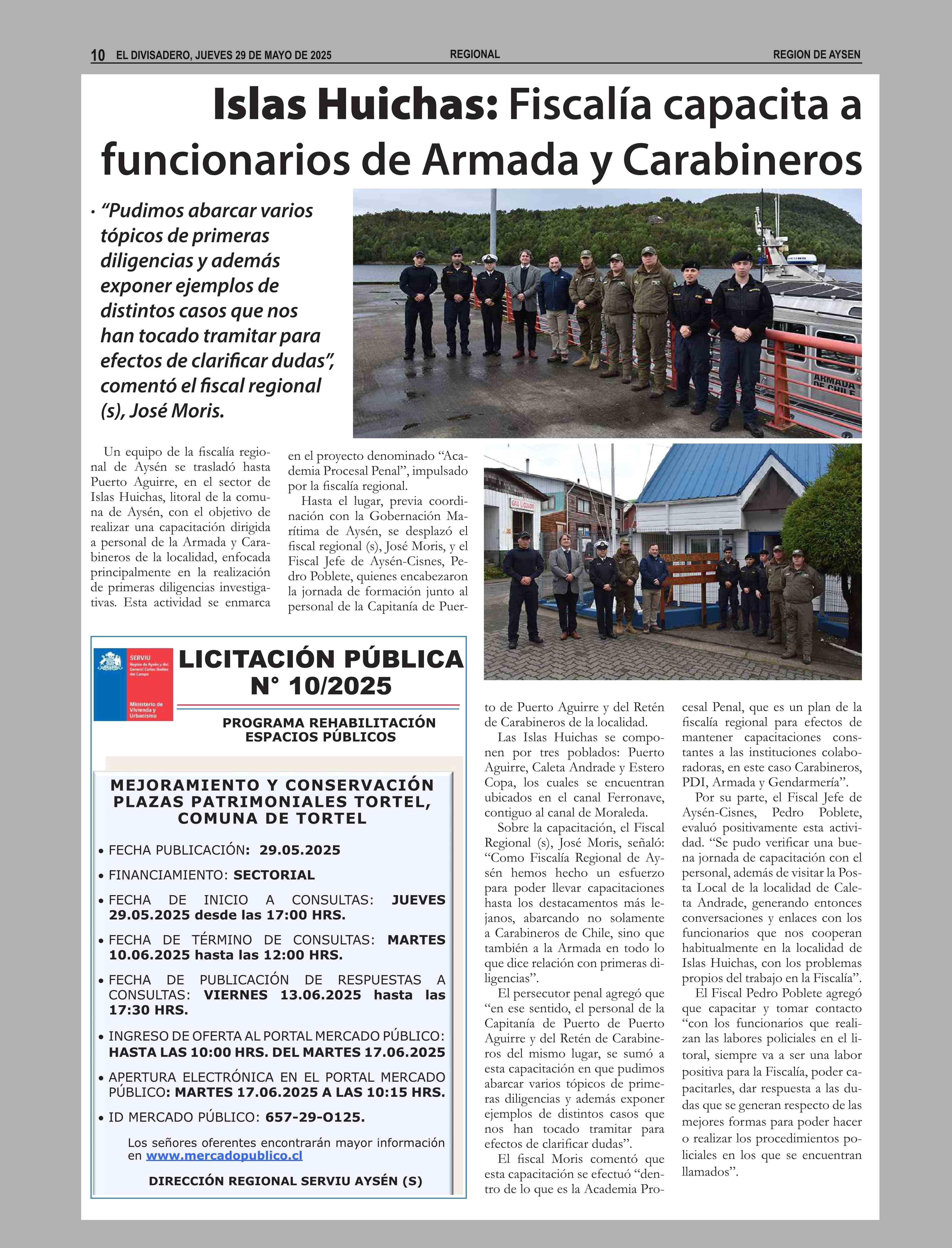 Islas Huichas: Fiscalía capacita a funcionarios de Armada y Carabineros 29-05-2025 El Divisadero |