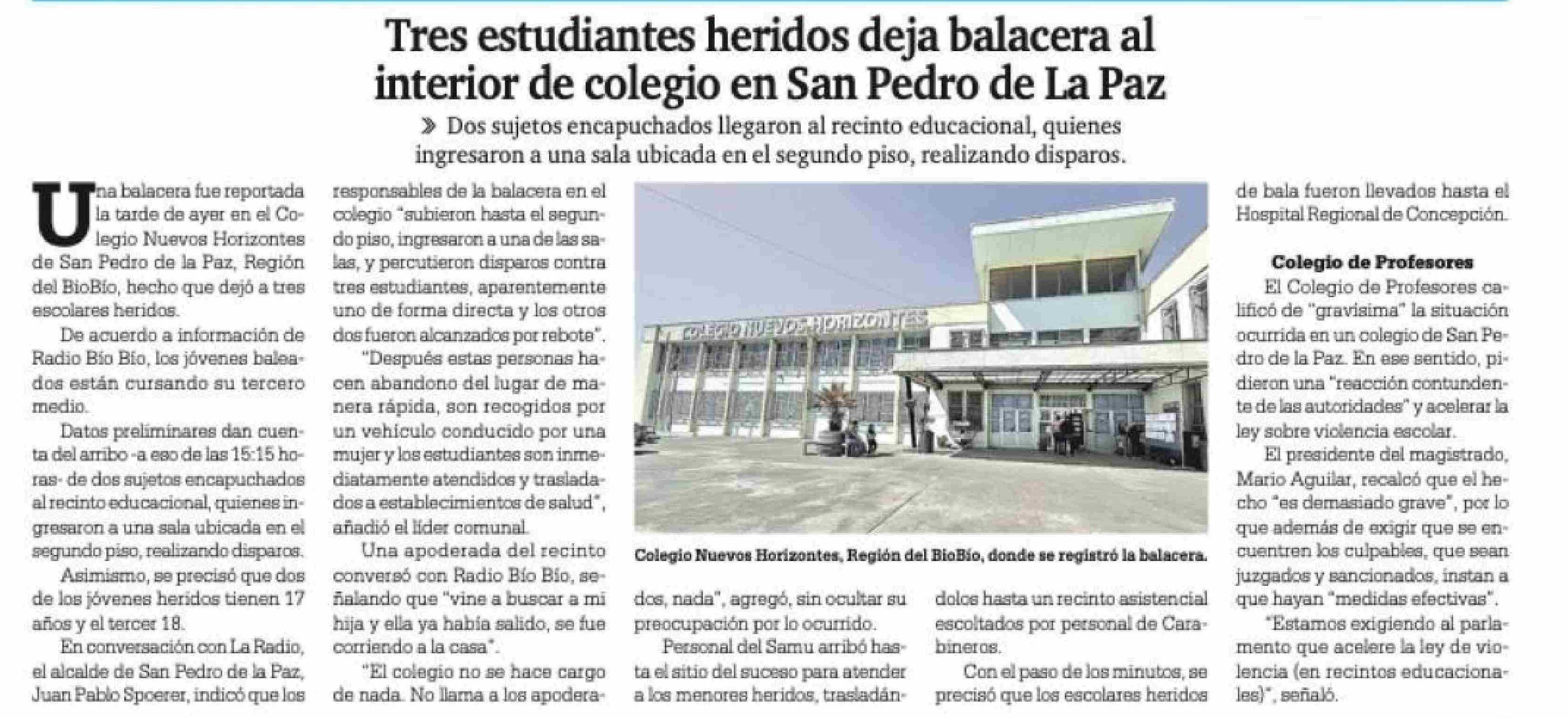 Tres estudiantes heridos deja balacera al interior de colegio en San Pedro de La Paz 30-05-2025 La Prensa Austral |
