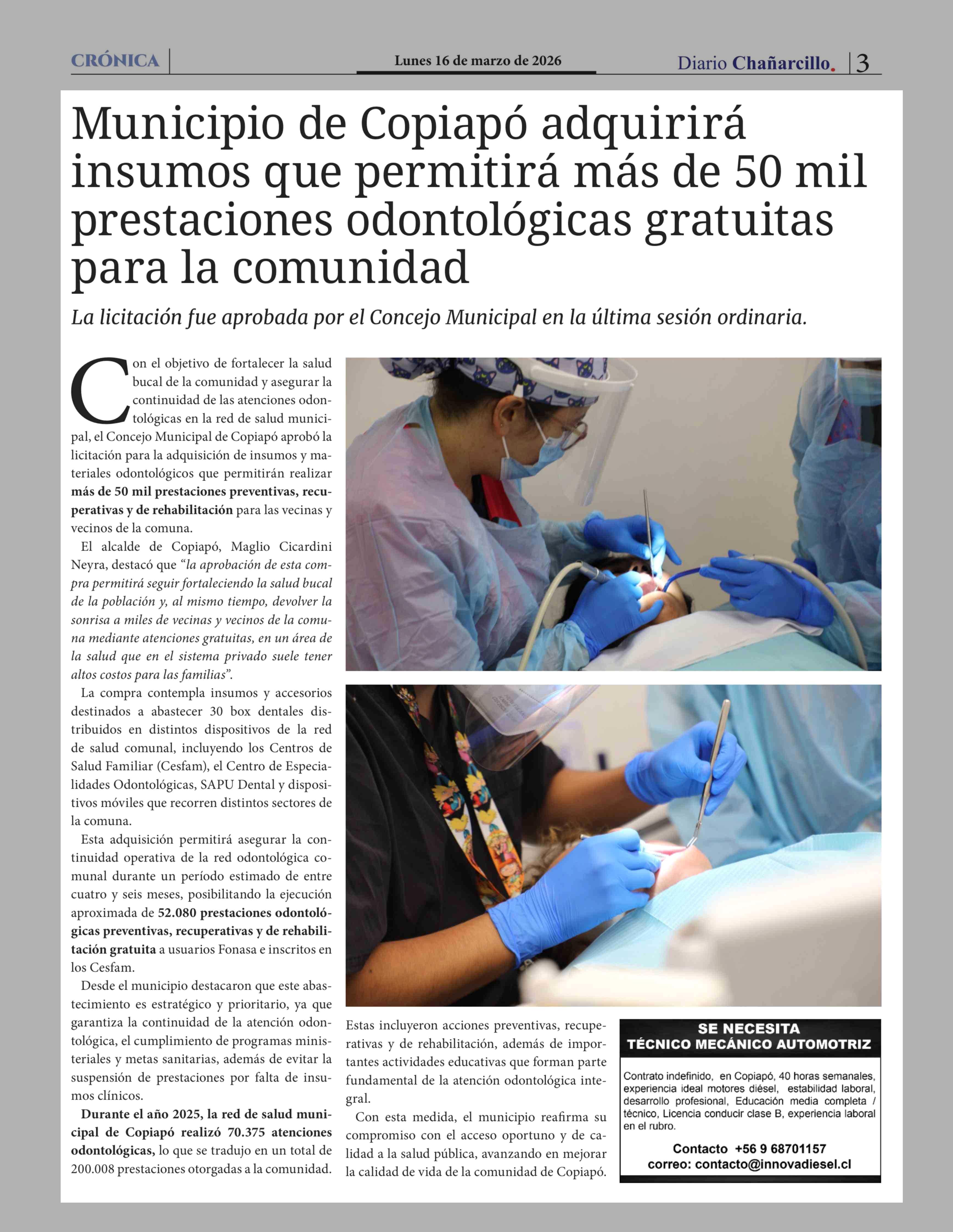 Título: Municipio de Copiapó adquirirá insumos que permitirá más de 50 mil prestaciones odontológicas gratuitas para la comunidad