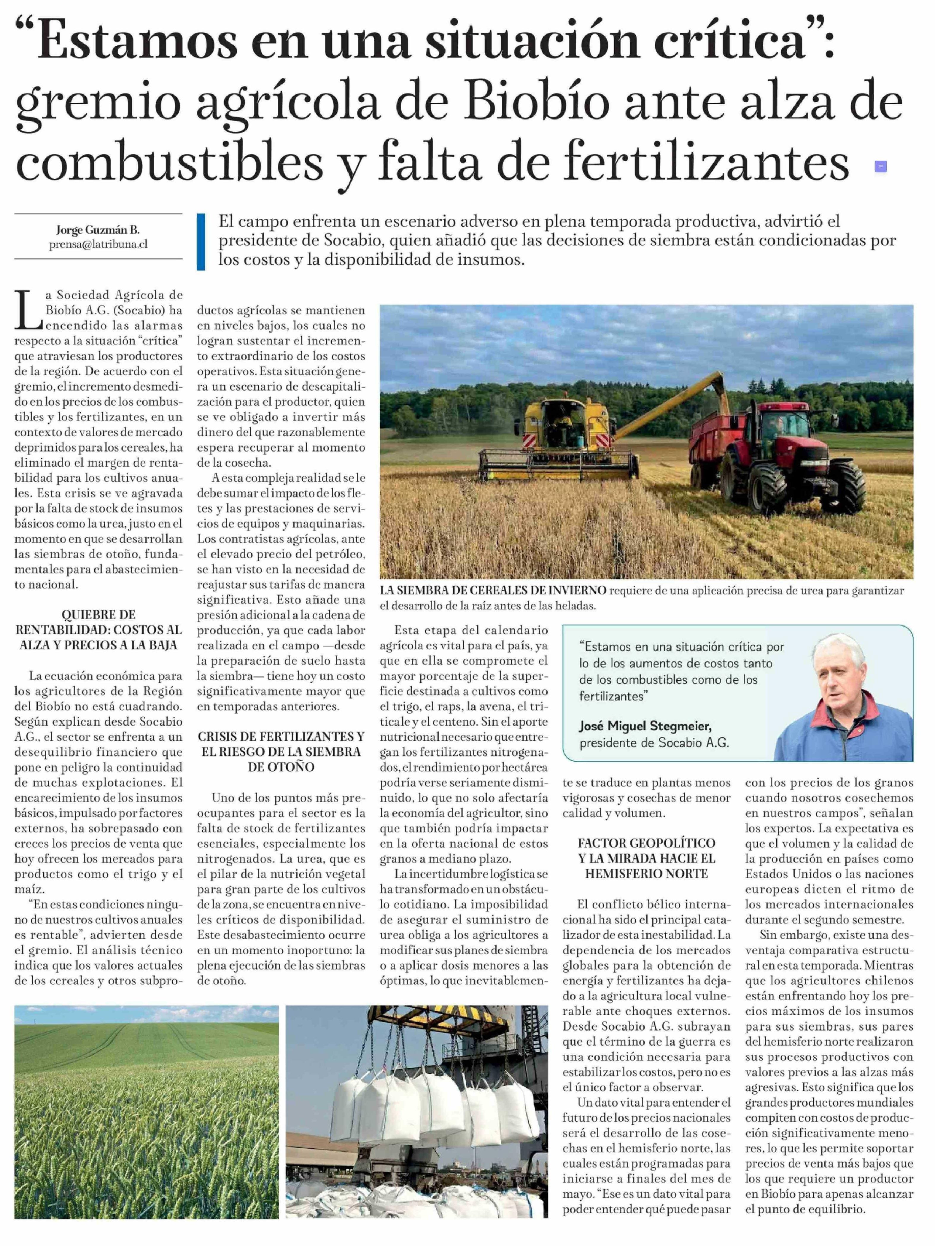 Título: "Estamos en una situación crítica": gremio agrícola de Biobío ante alza de combustibles y falta de fertilizantes
