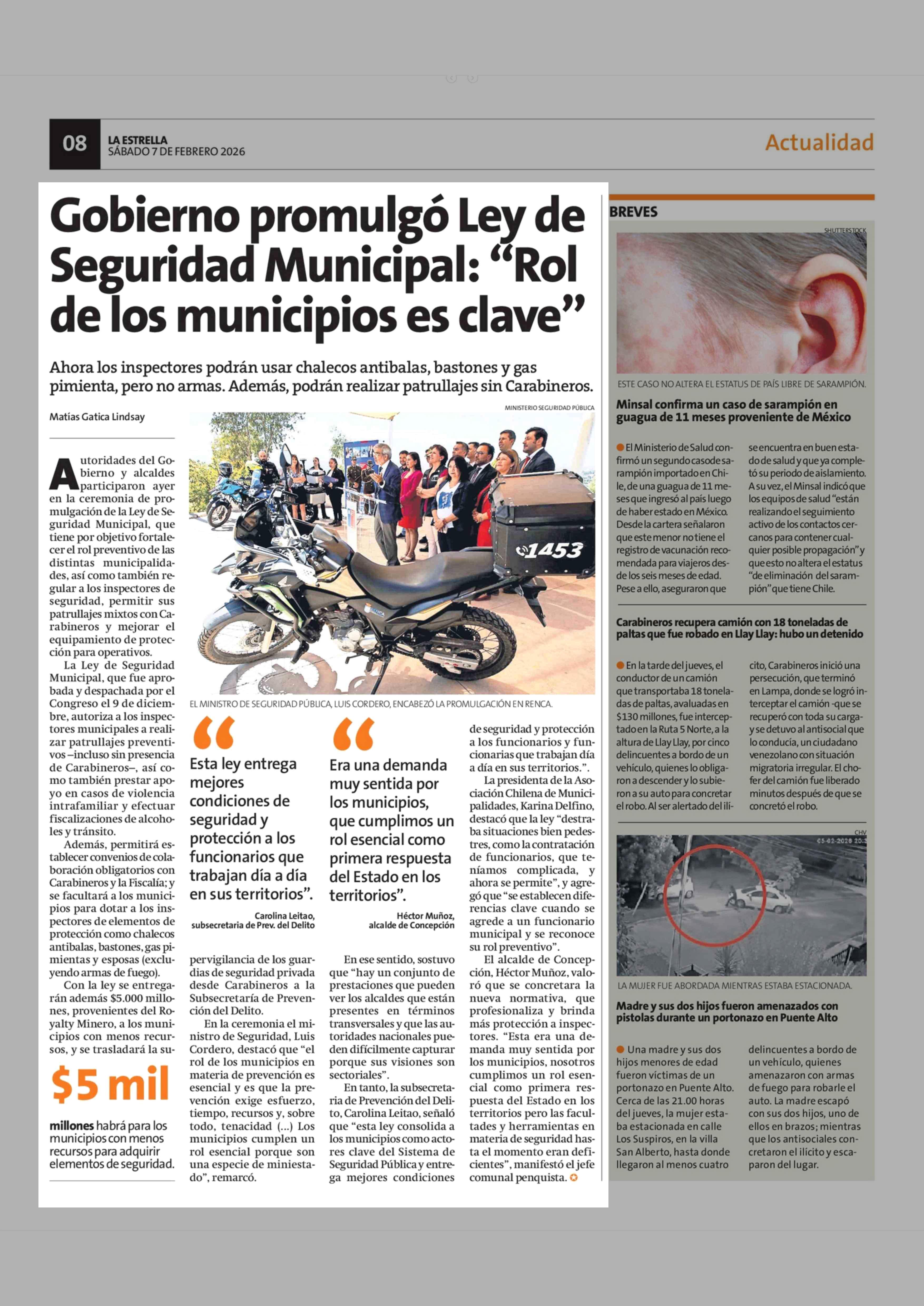 Título: Gobierno promulgó Ley de Seguridad Municipal: "Rol de los municipios es clave"