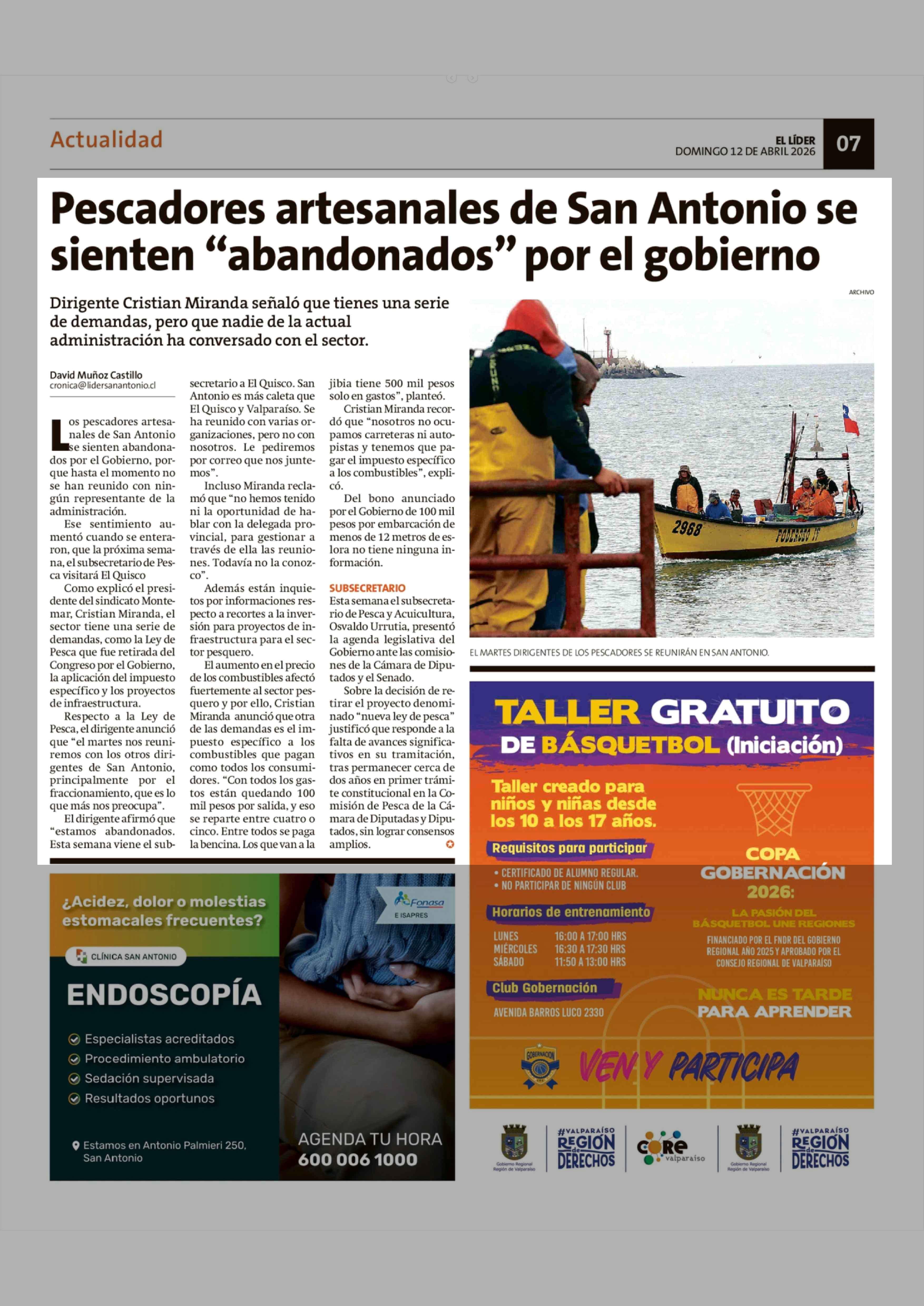 Pescadores artesanales de San Antonio se sienten "abandonados" por el gobierno 12-04-2026 El Líder |