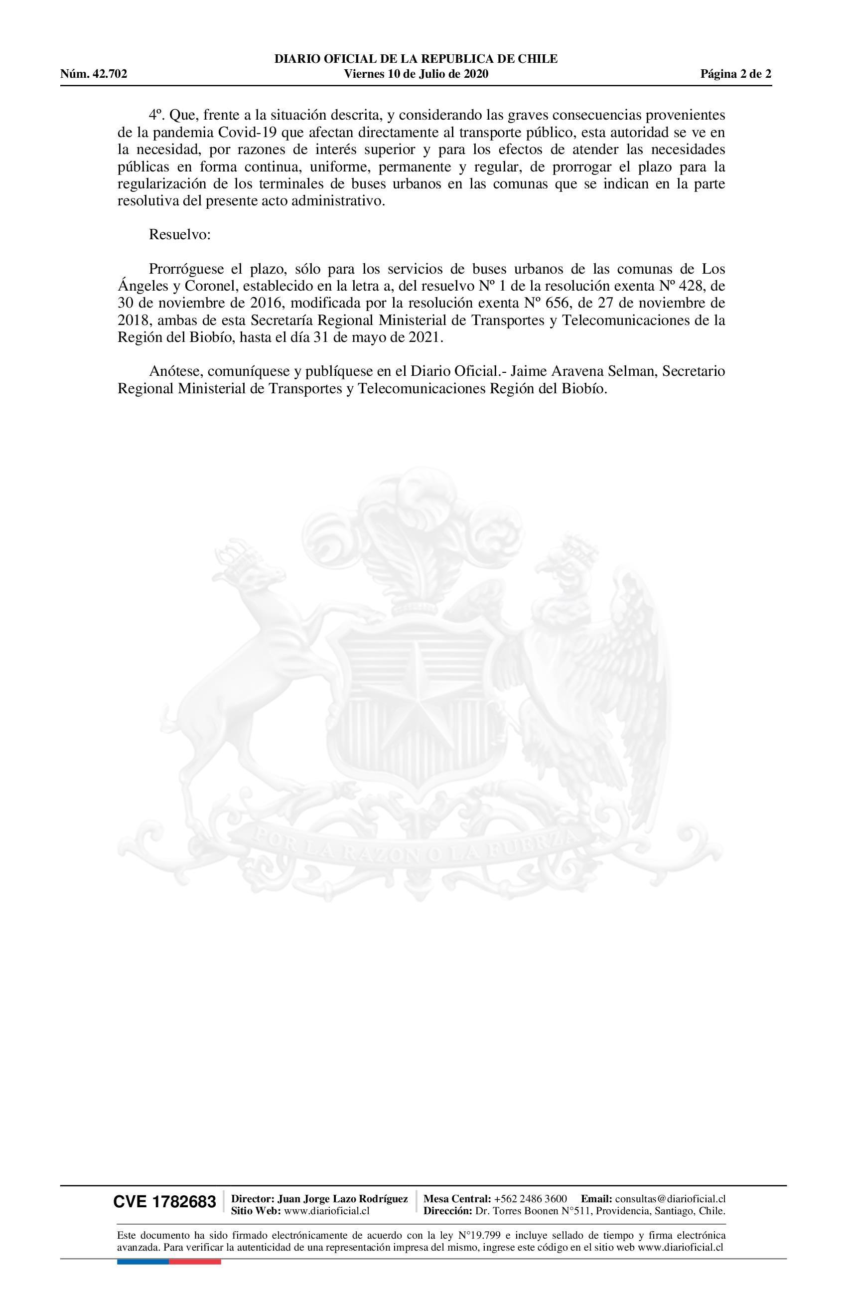 | Título: | Ministerio de Transportes Y Telecomunicaciones Prorroga Plazo Contenido En la Resolución Nº 428 Exenta, de 2016, Que Establece Fecha Y Condiciones de Cumplimiento Del Artículo 45 Del Decreto Supremo Nº 212, 1992, Para Servicios Que Indica, En la Regi |