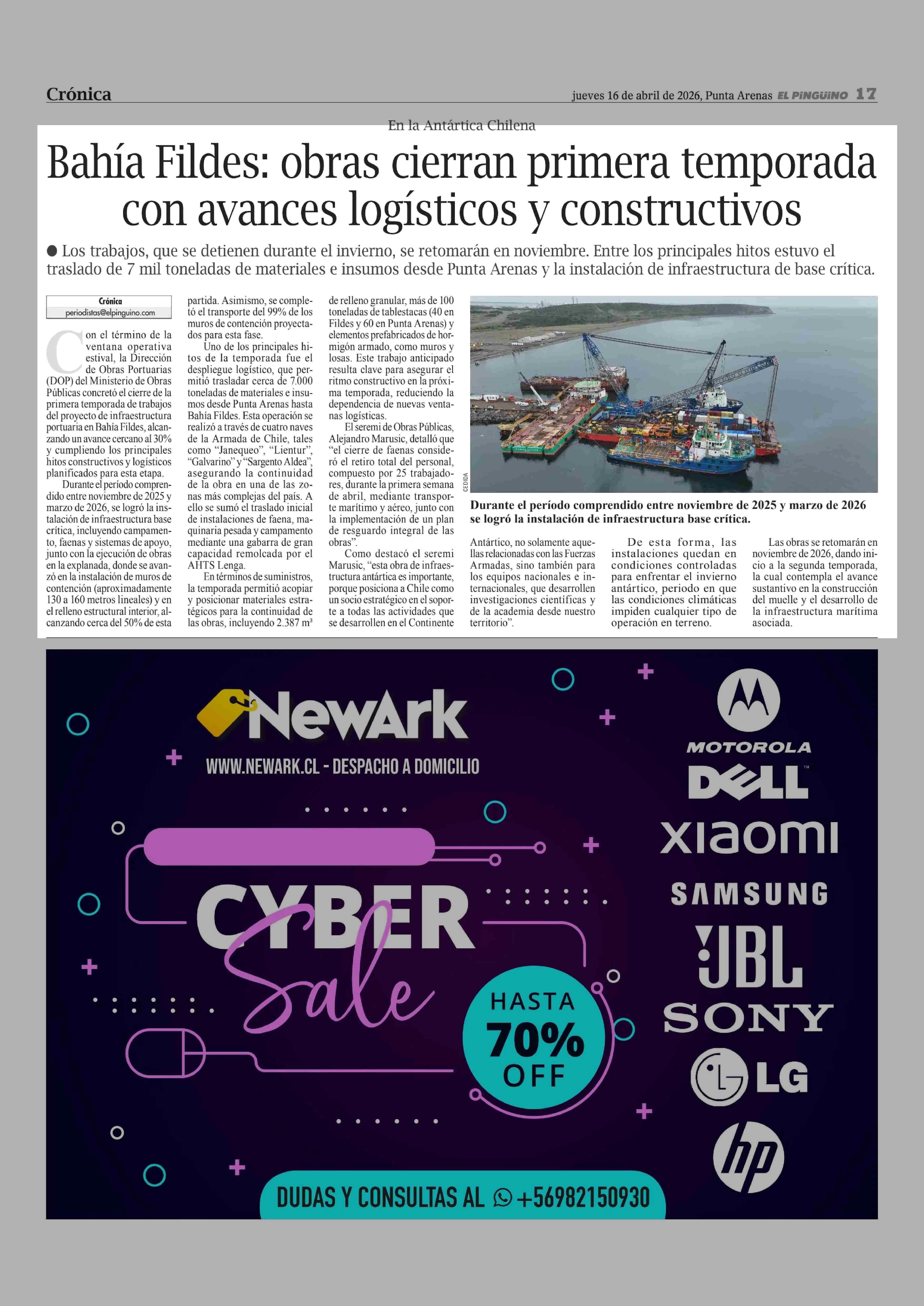 Bahía Fildes: obras cierran primera temporada con avances logísticos y constructivos 16-04-2026 El Pingüino |