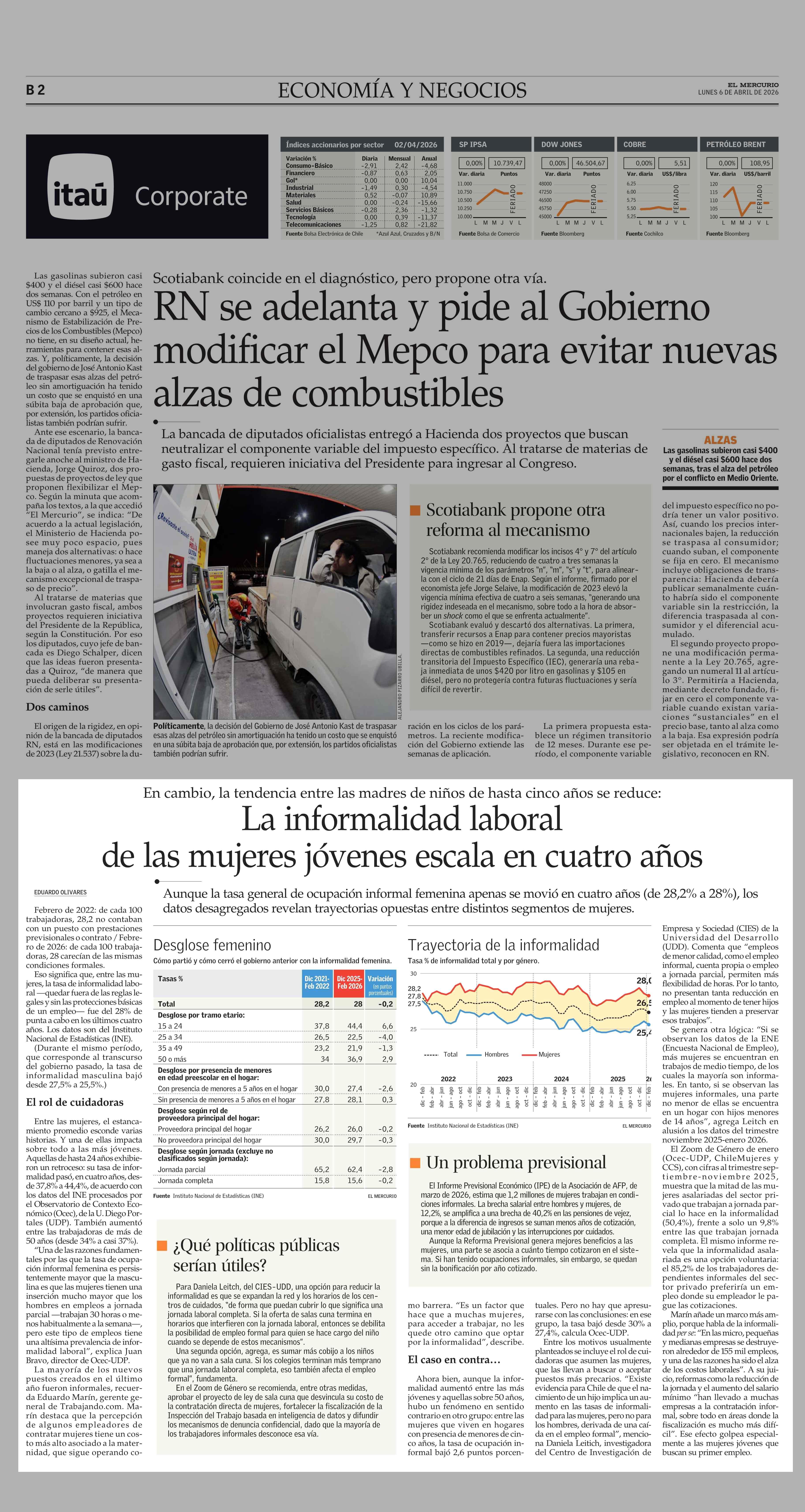 La informalidad laboral de las mujeres jóvenes escala en cuatro años 06-04-2026 El Mercurio |