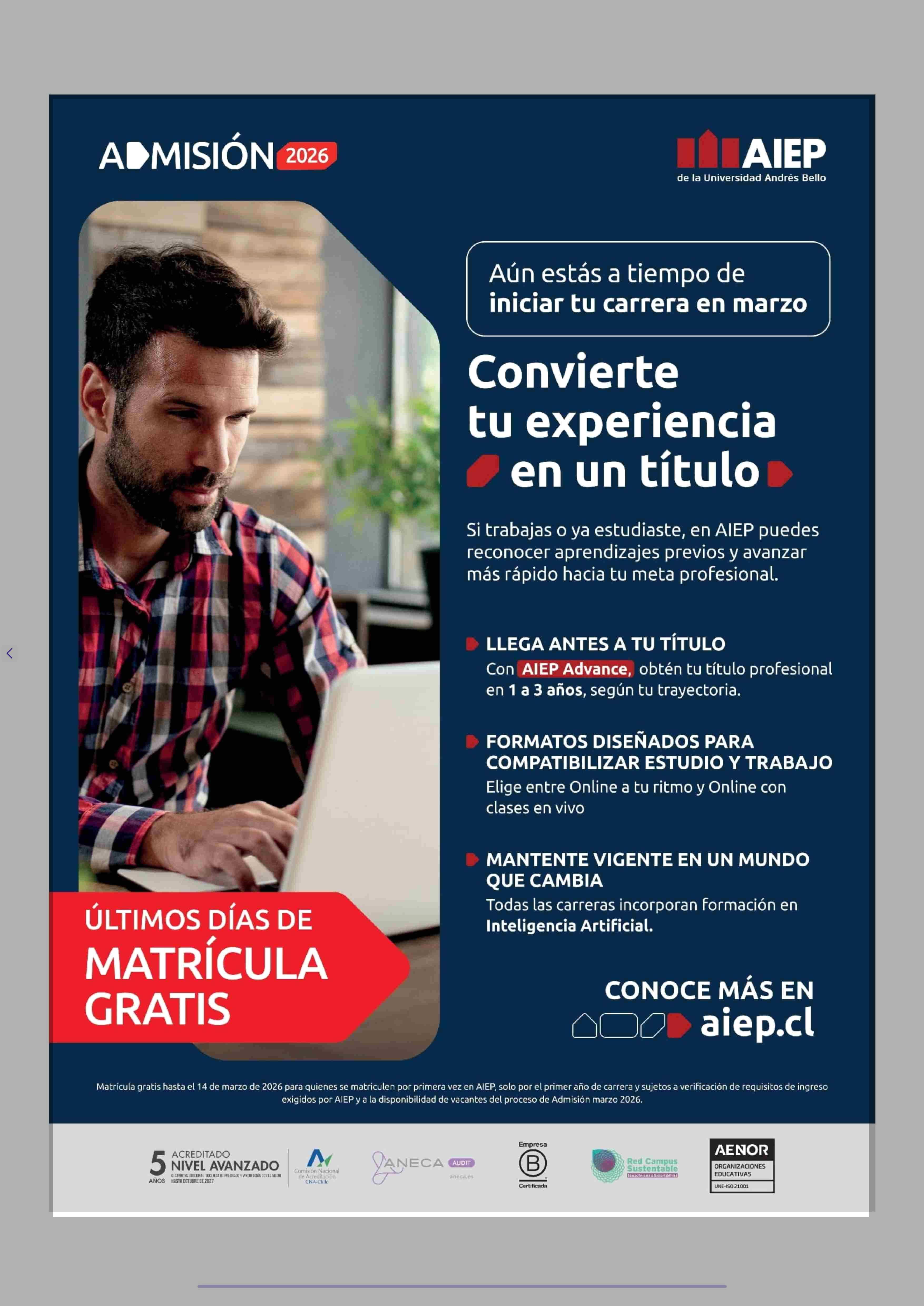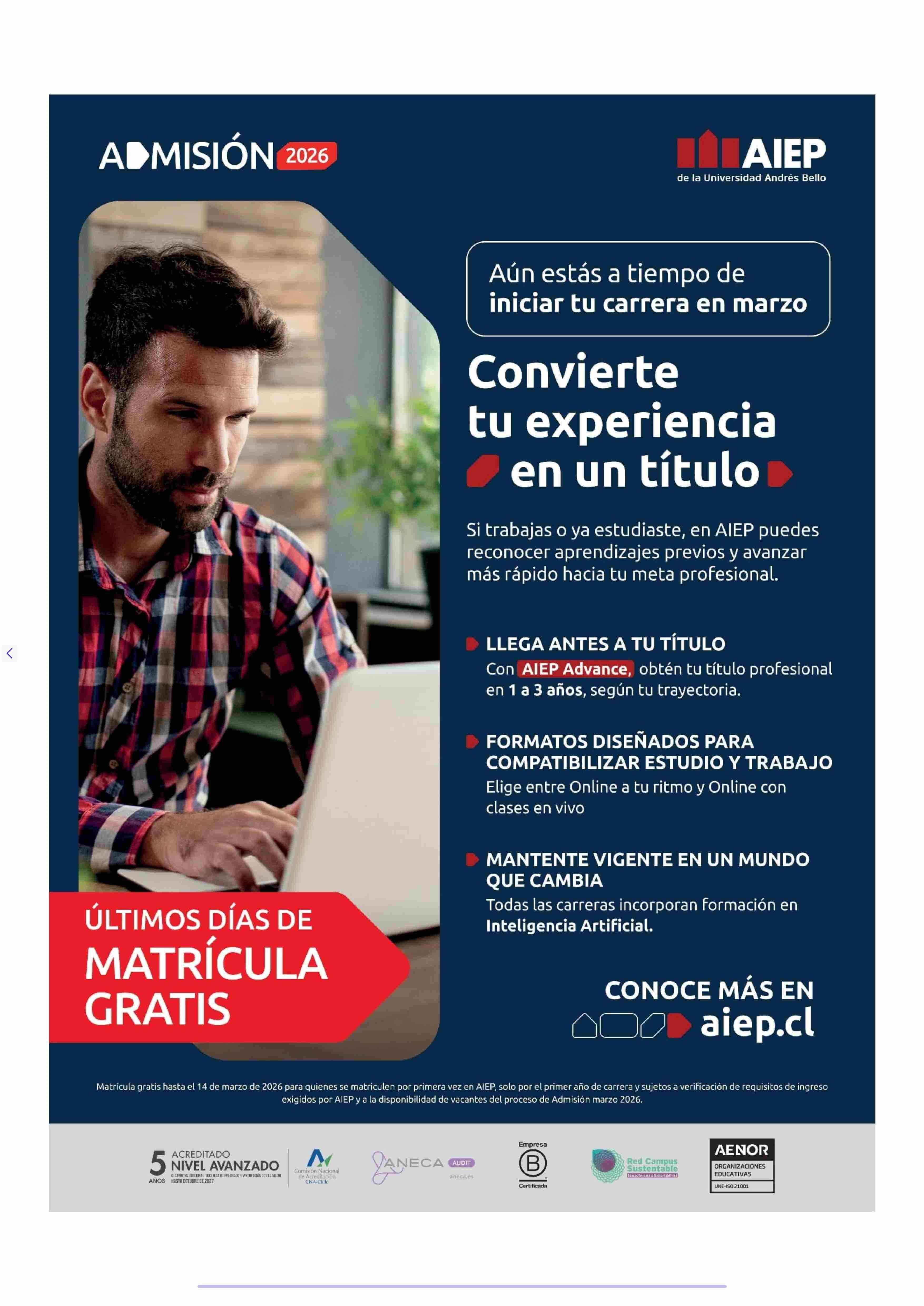 AVISO PUBLICITARIO: AIEP 15-03-2026 La Tercera |