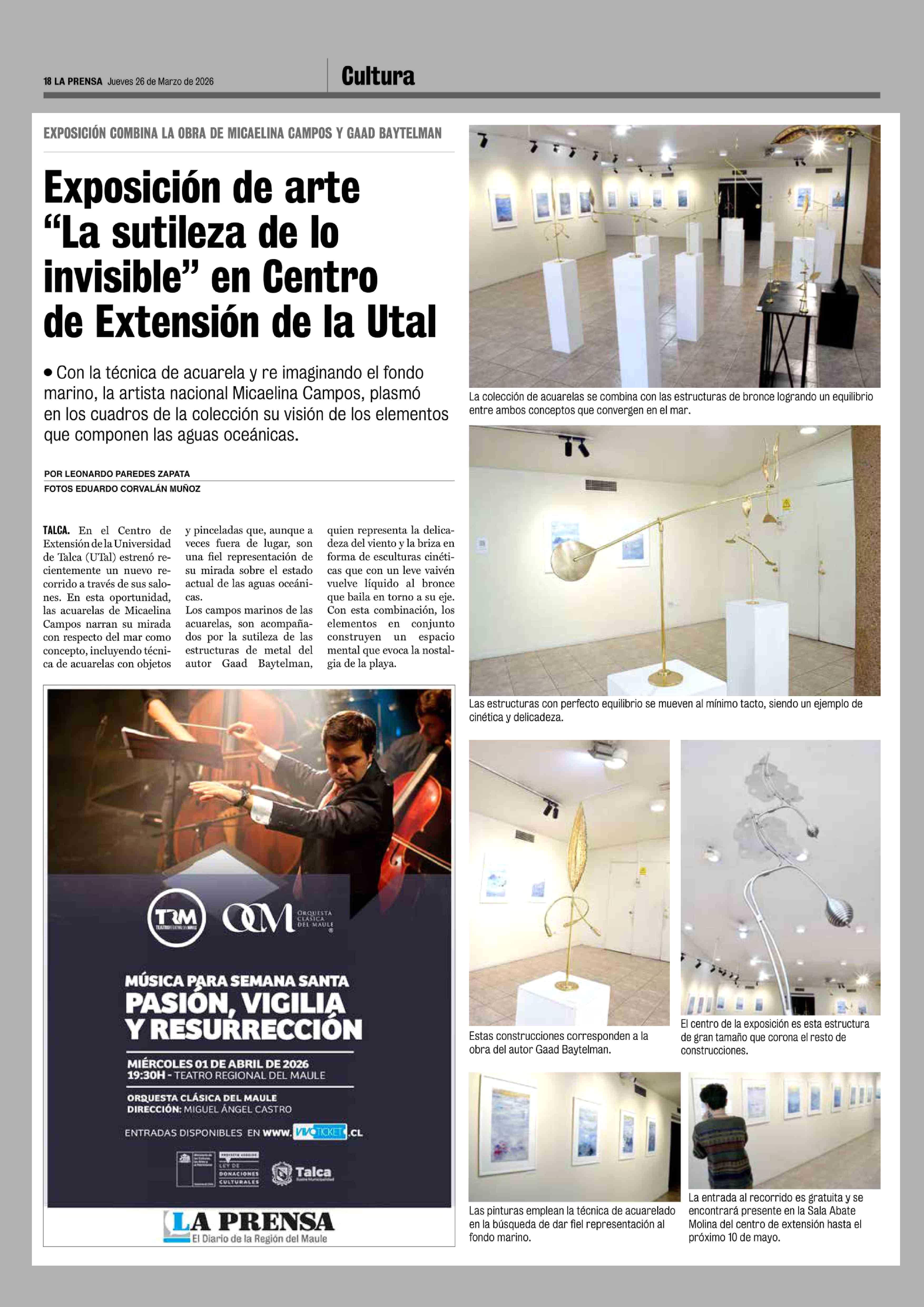 Exposición de arte "La sutileza de lo invisible" en Centro de Extensión de la Utal 26-03-2026 La Prensa de Curicó |