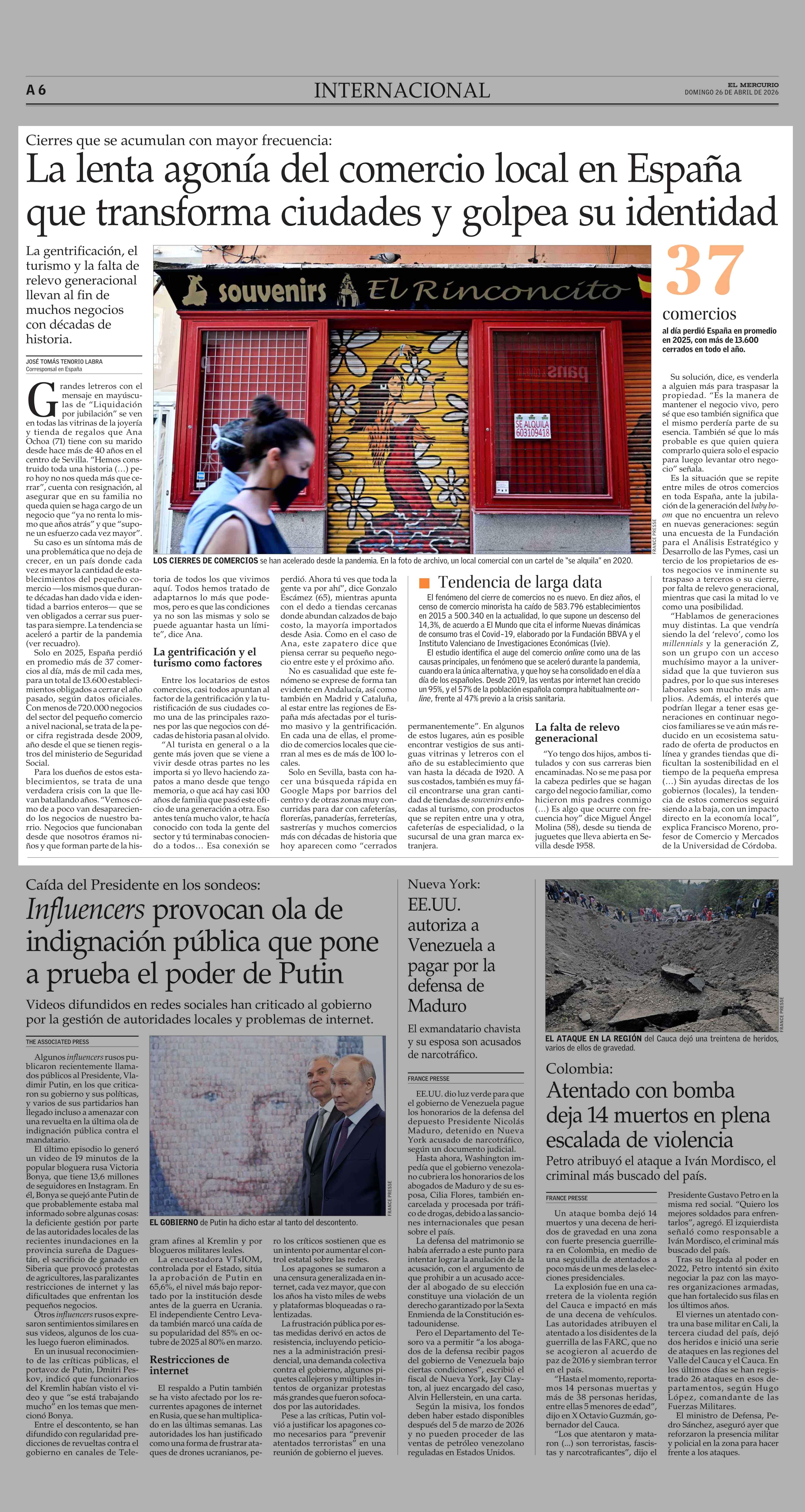La lenta agonía del comercio local en España que transforma ciudades y golpea su identidad 26-04-2026 El Mercurio |