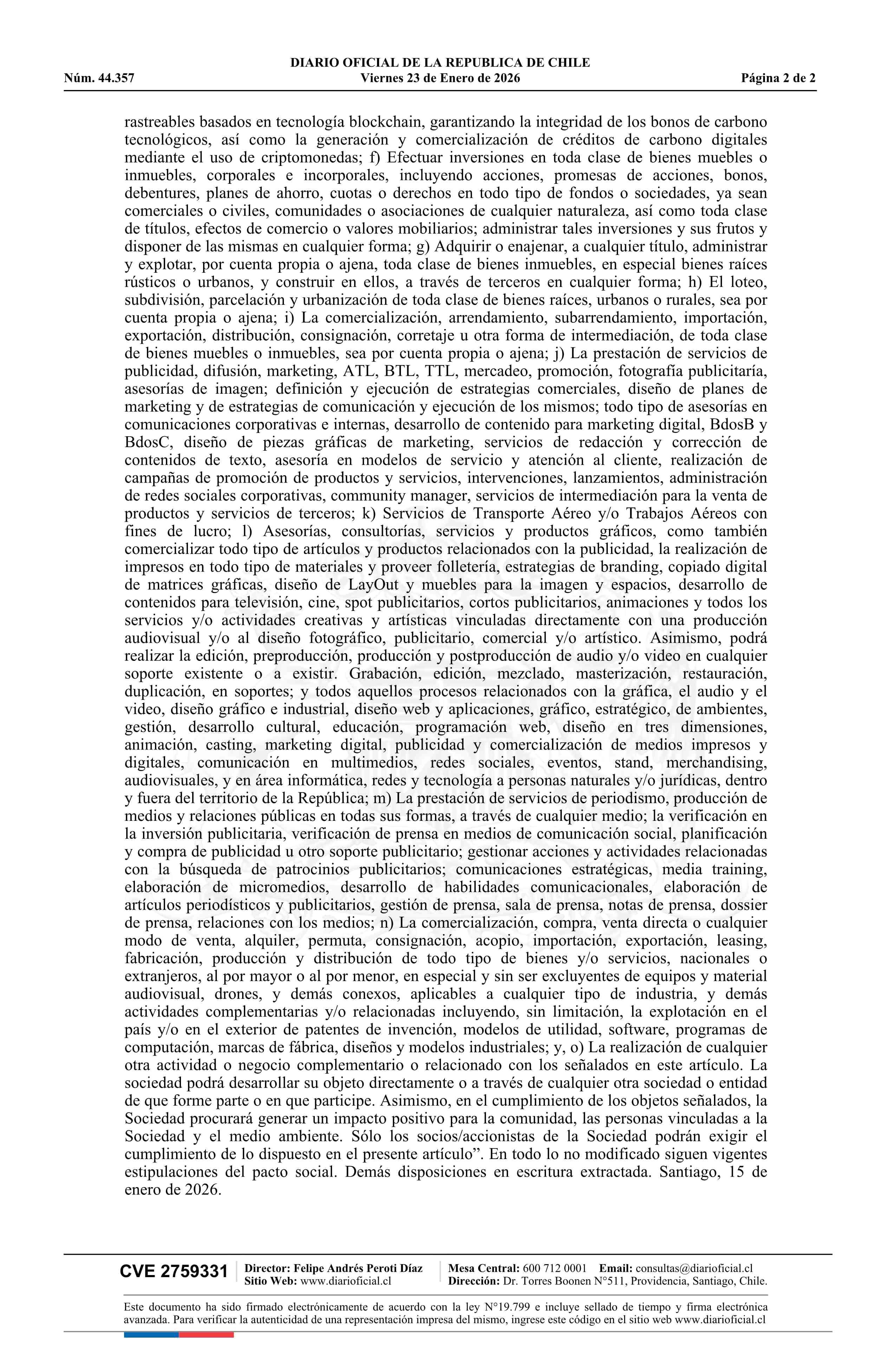 CARBON REAL SpA 77.598.057-5* 23-01-2026 Diario Oficial Edición Electrónica |