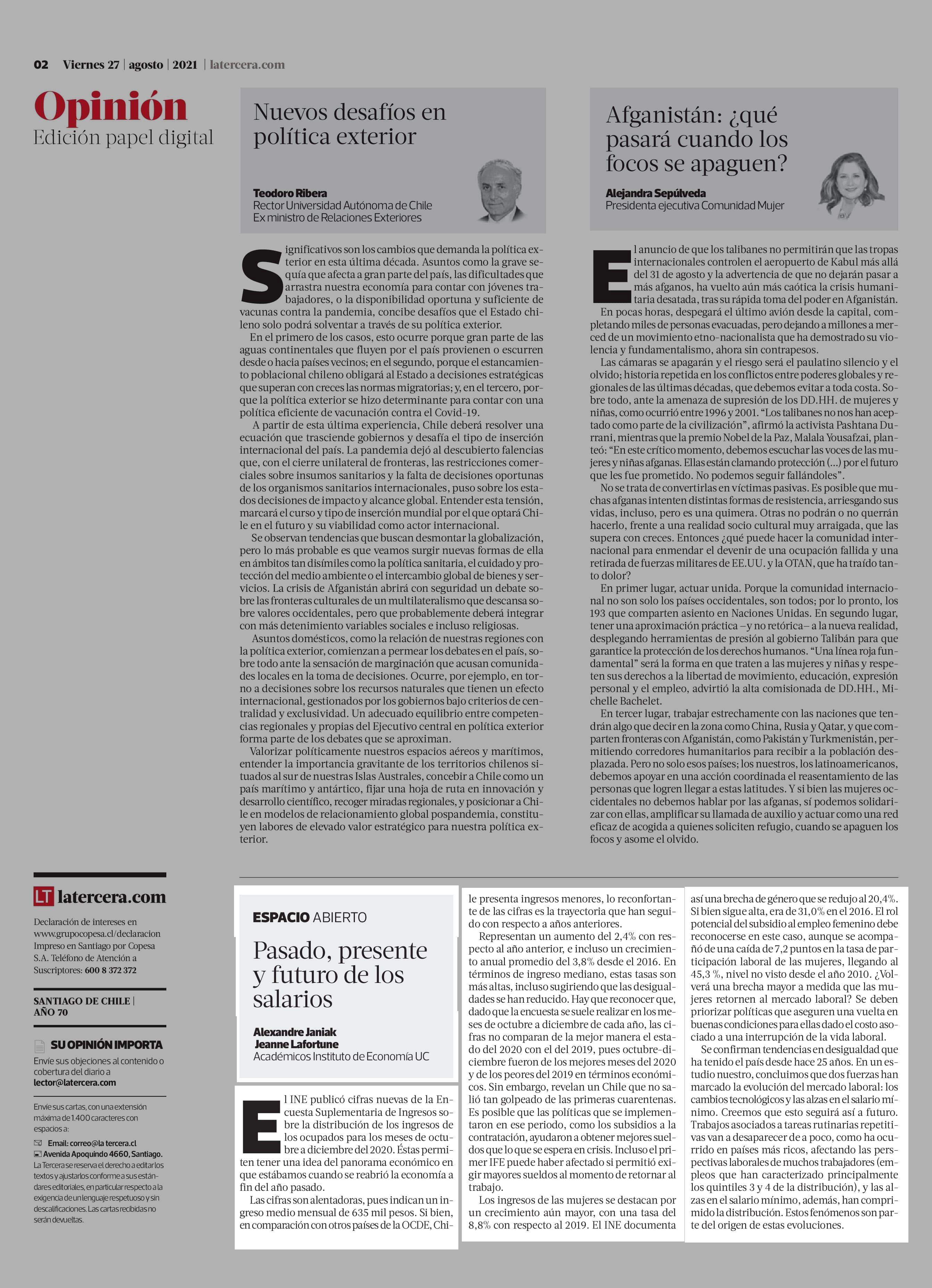 Pasado, presente y futuro de los salarios 27-08-2021 La Tercera |