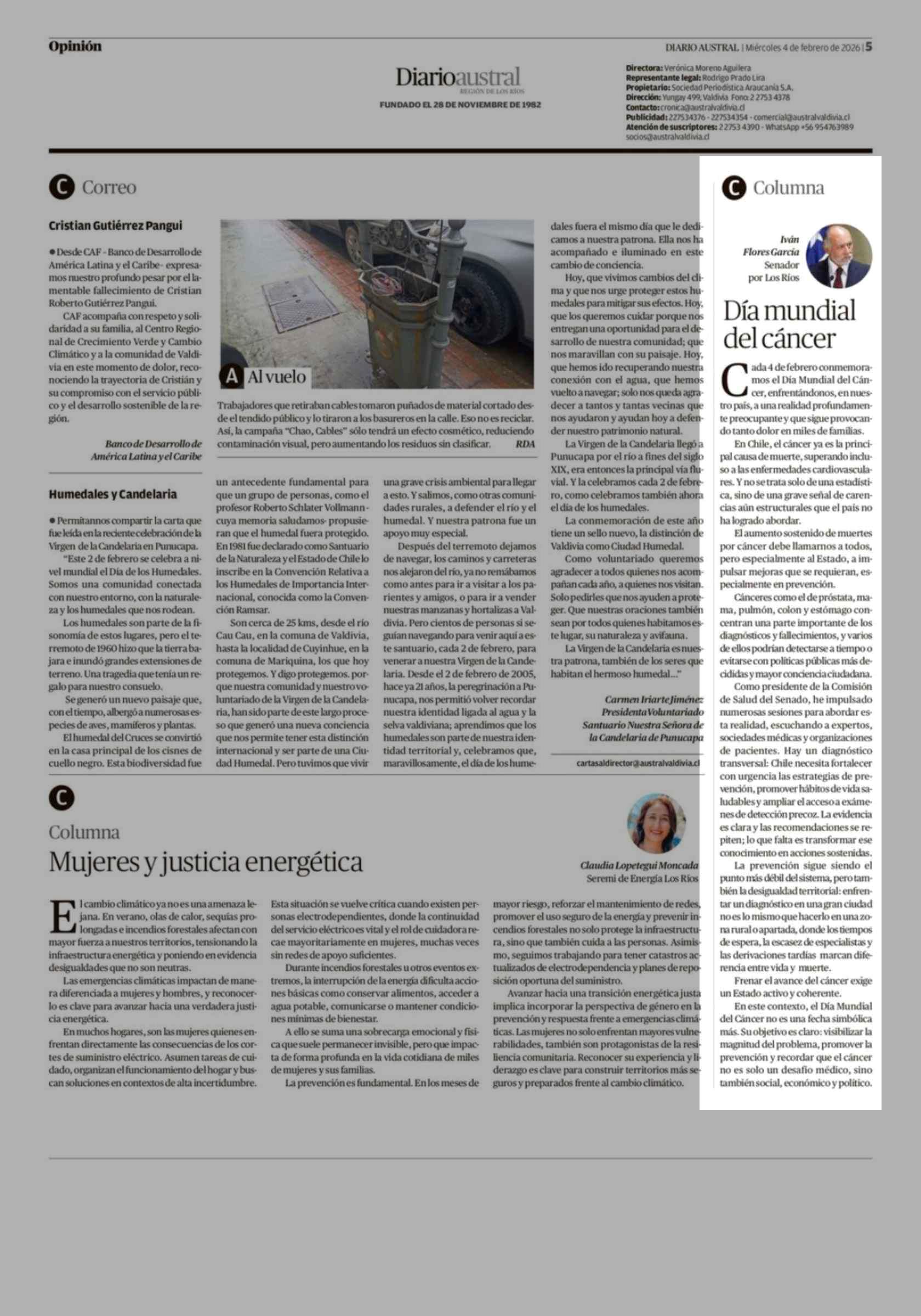 Columnas de Opinión: Día mundial del cáncer 04-02-2026 Diario Austral Región de Los Ríos |