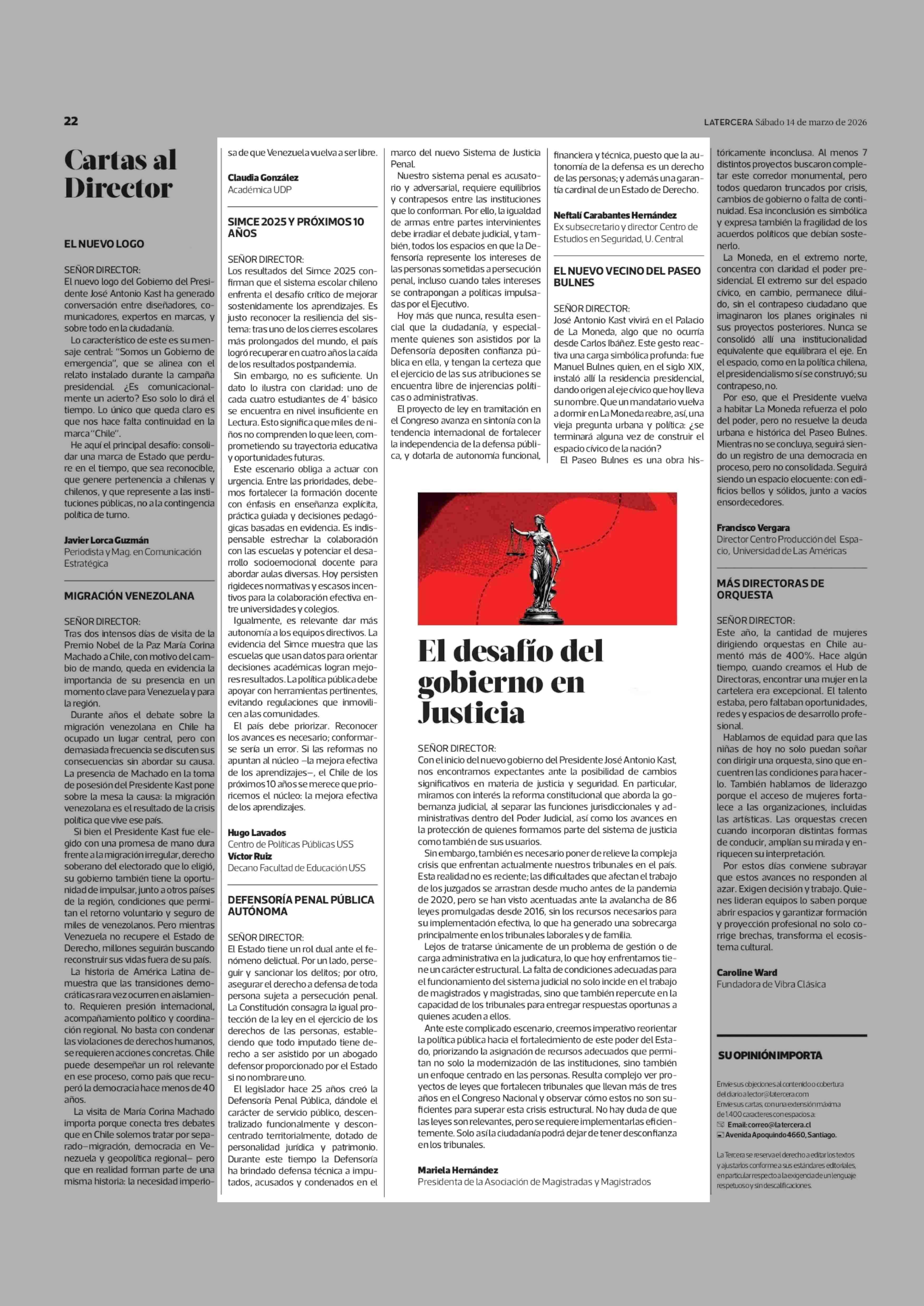 CARTAS: DEFENSORÍA PENAL PÚBLICA AUTÓNOMA 14-03-2026 La Tercera |