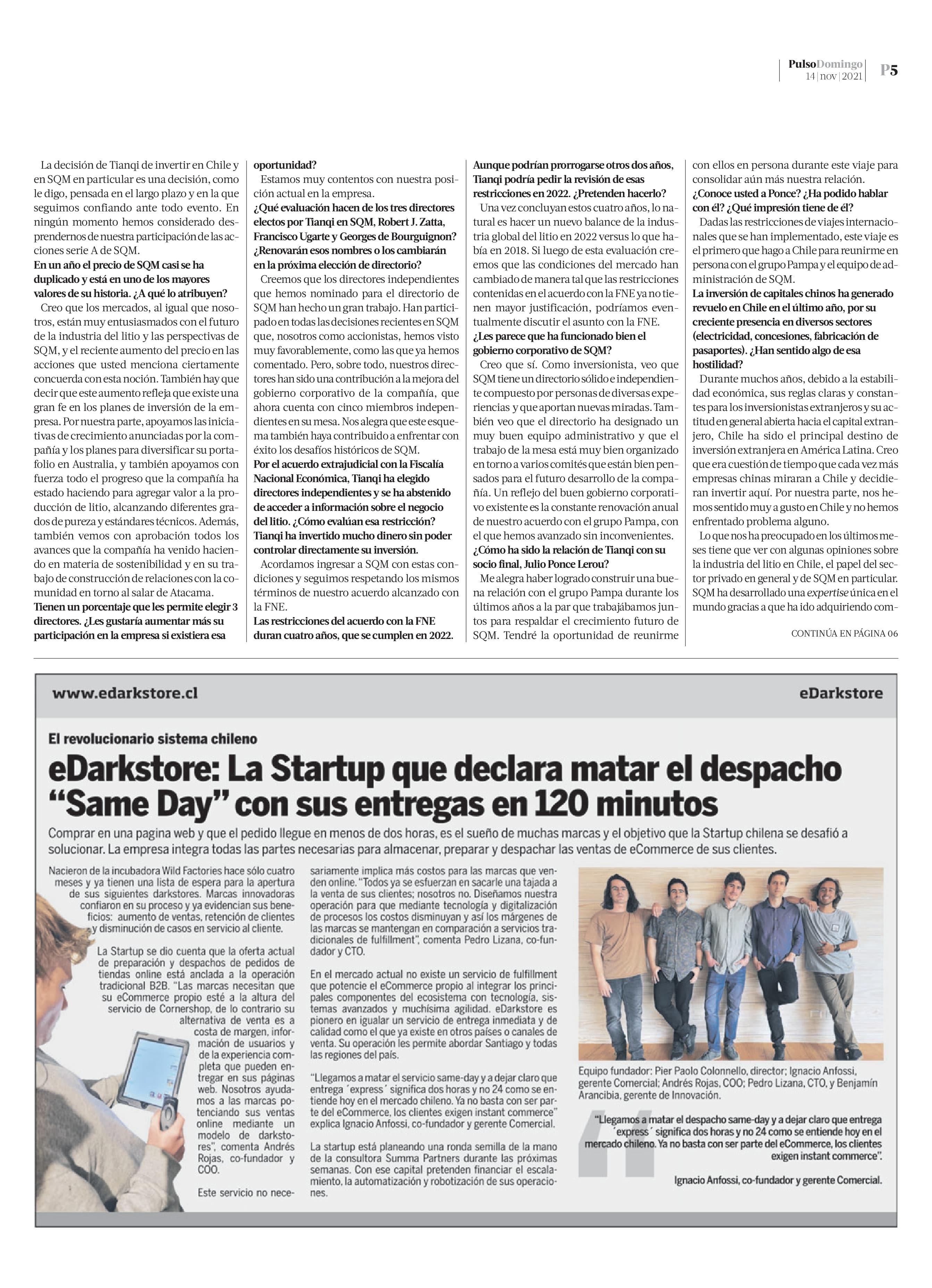 E Darkstore: La Startup que declara matar el despacho “Same Day” con sus entregas en 120 minutos 14-11-2021 La Tercera |