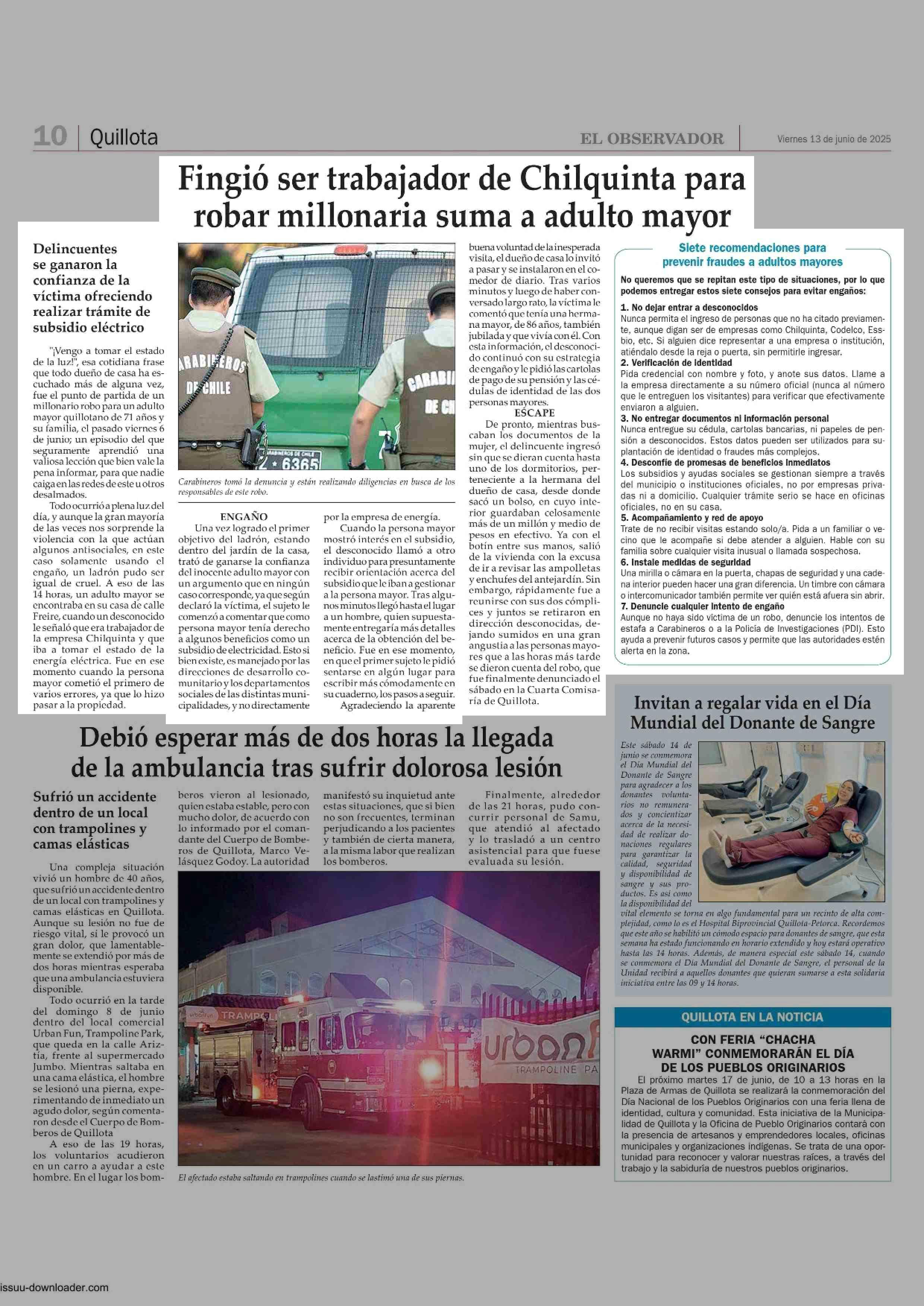 Fingió ser trabajador de Chilquinta para robar millonaria suma a adulto mayor 13-06-2025 El Observador |