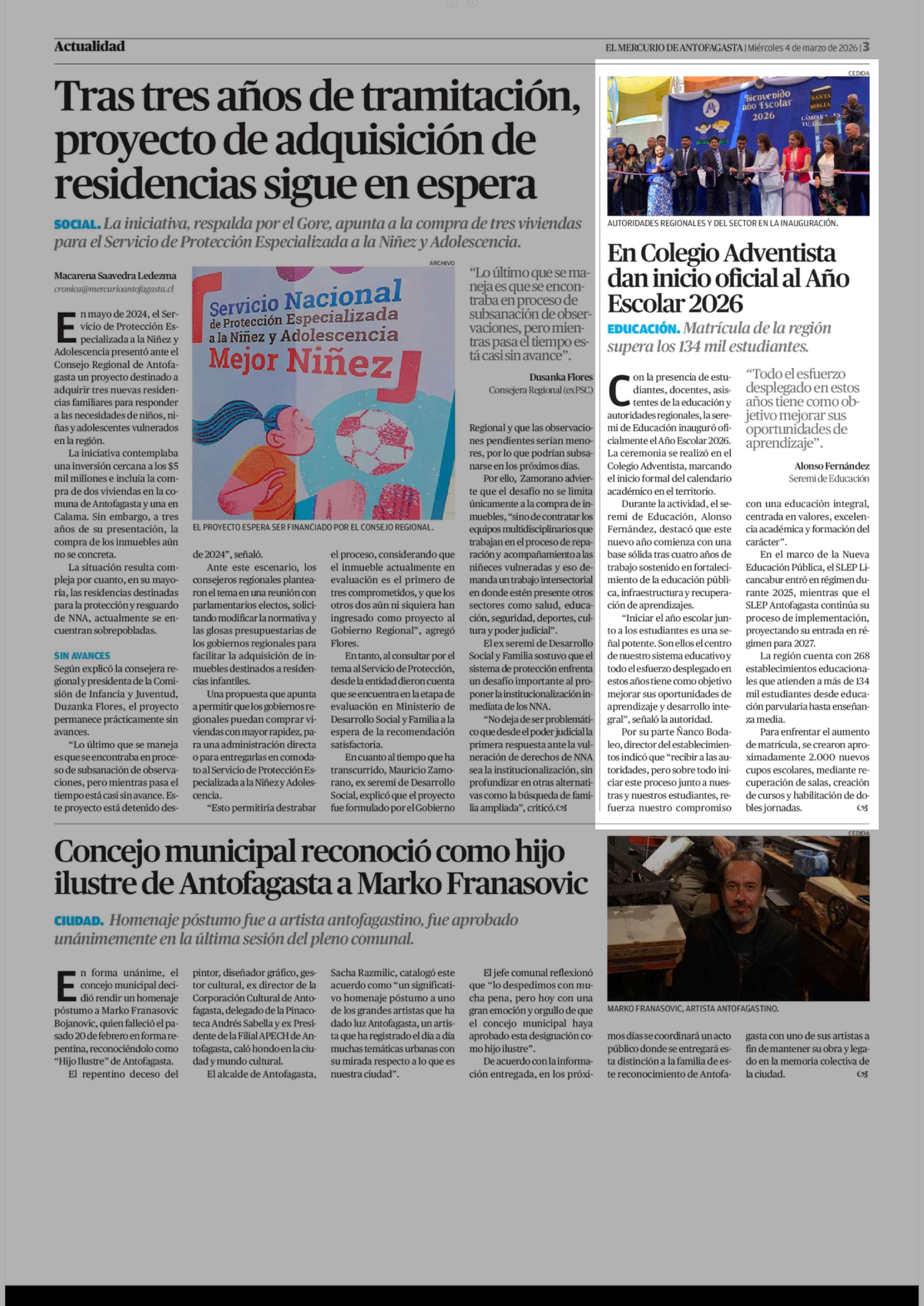 Fuente: El Mercurio de Antofagasta (El Mercurio de Antofagasta) Página(s): 3