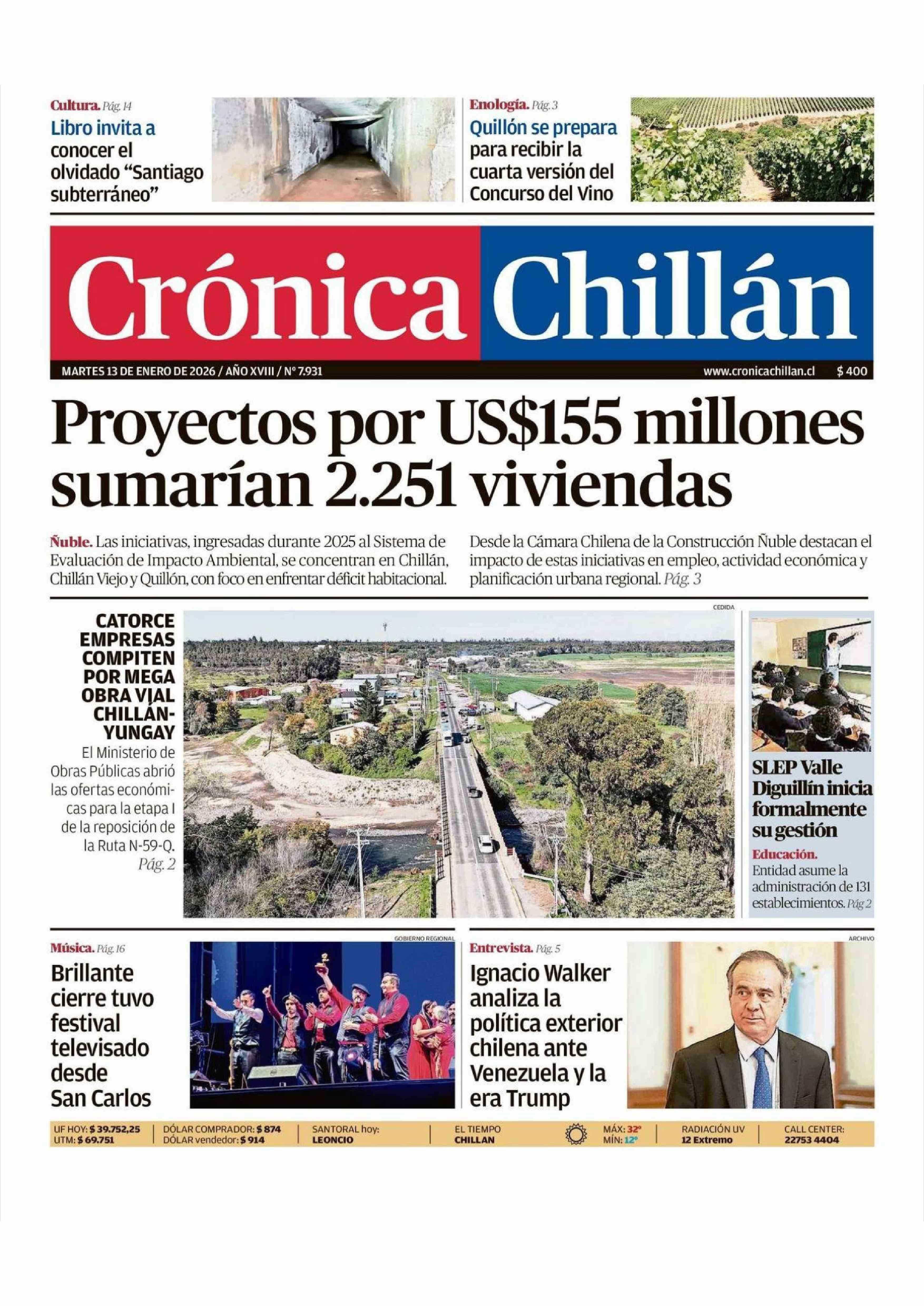 PORTADA CRÓNICA CHILLÁN CHILE 13-01-2026 Crónica de Chillán |