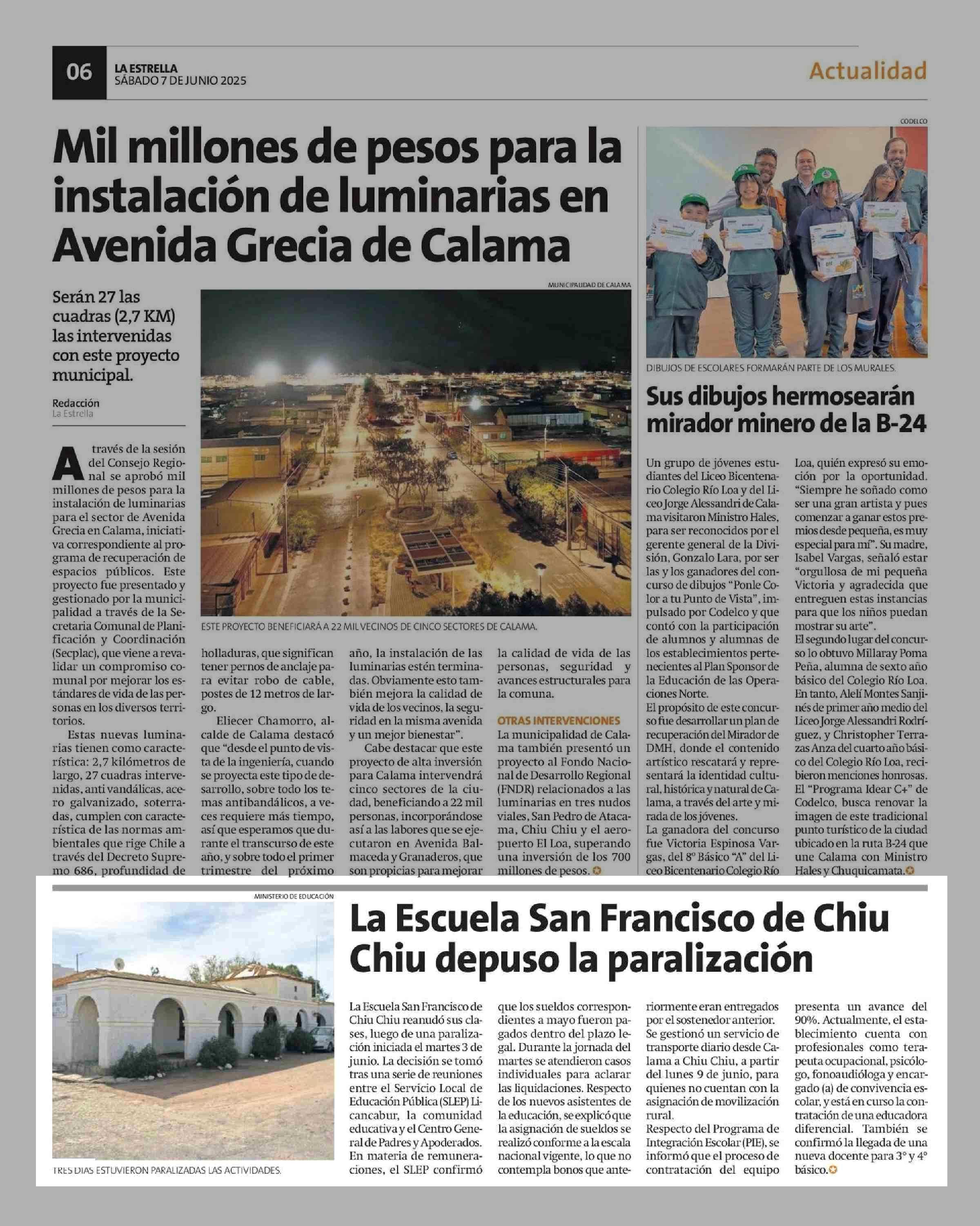 La Escuela San Francisco de Chiu Chiu depuso la paralización 07-06-2025 La Estrella de Antofagasta |