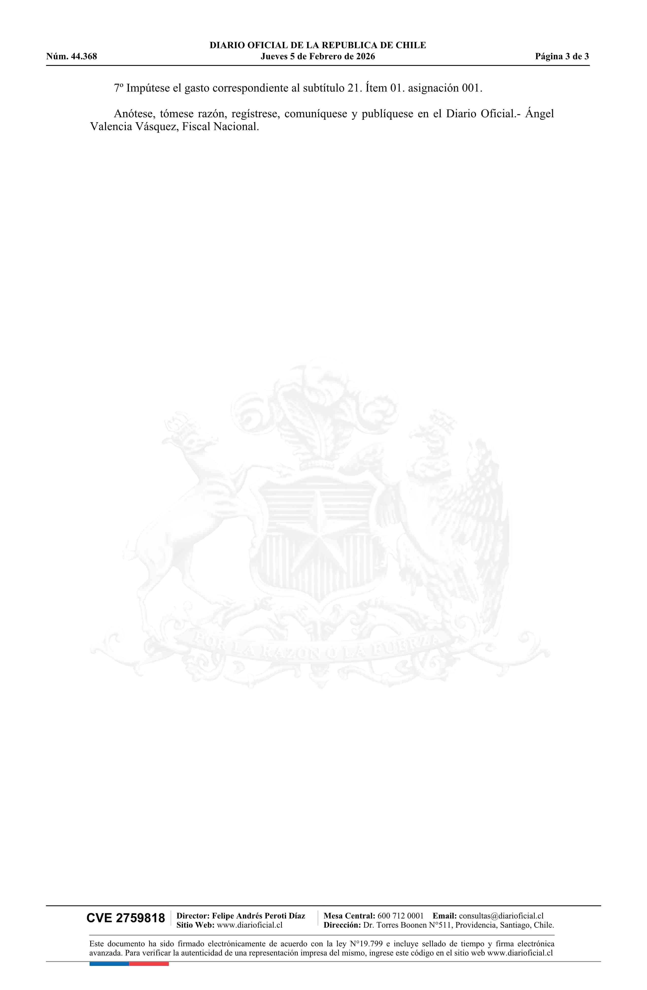 | Título: | Resolución número TR 3, de 2025.- Nombra a don Miguel Ángel Orellana Pérez en el cargo de Fiscal Jefe de la Fiscalía Supraterritorial |