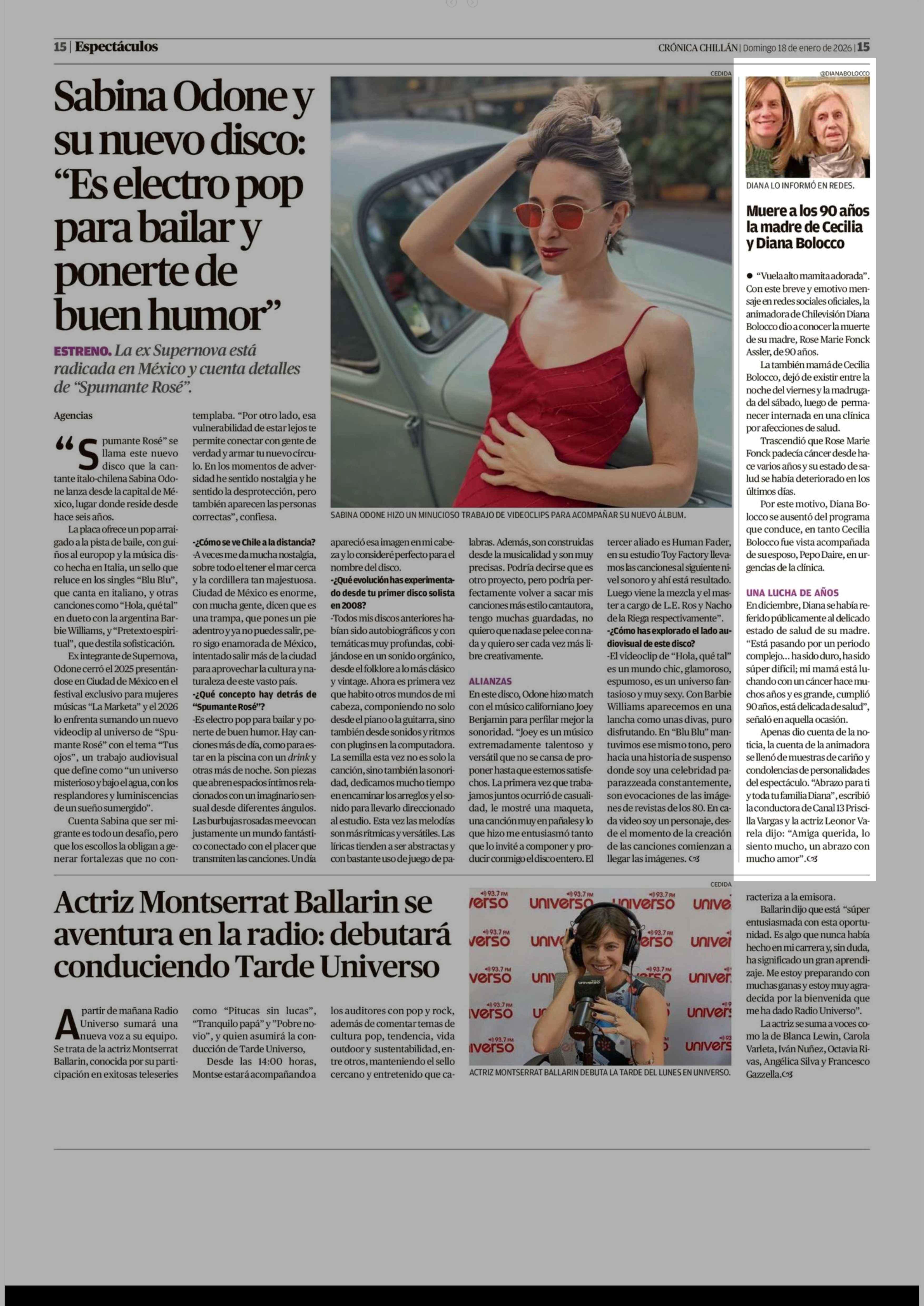 Título: Muere a los 90 años la madre de Cecilia y Diana Bolocco