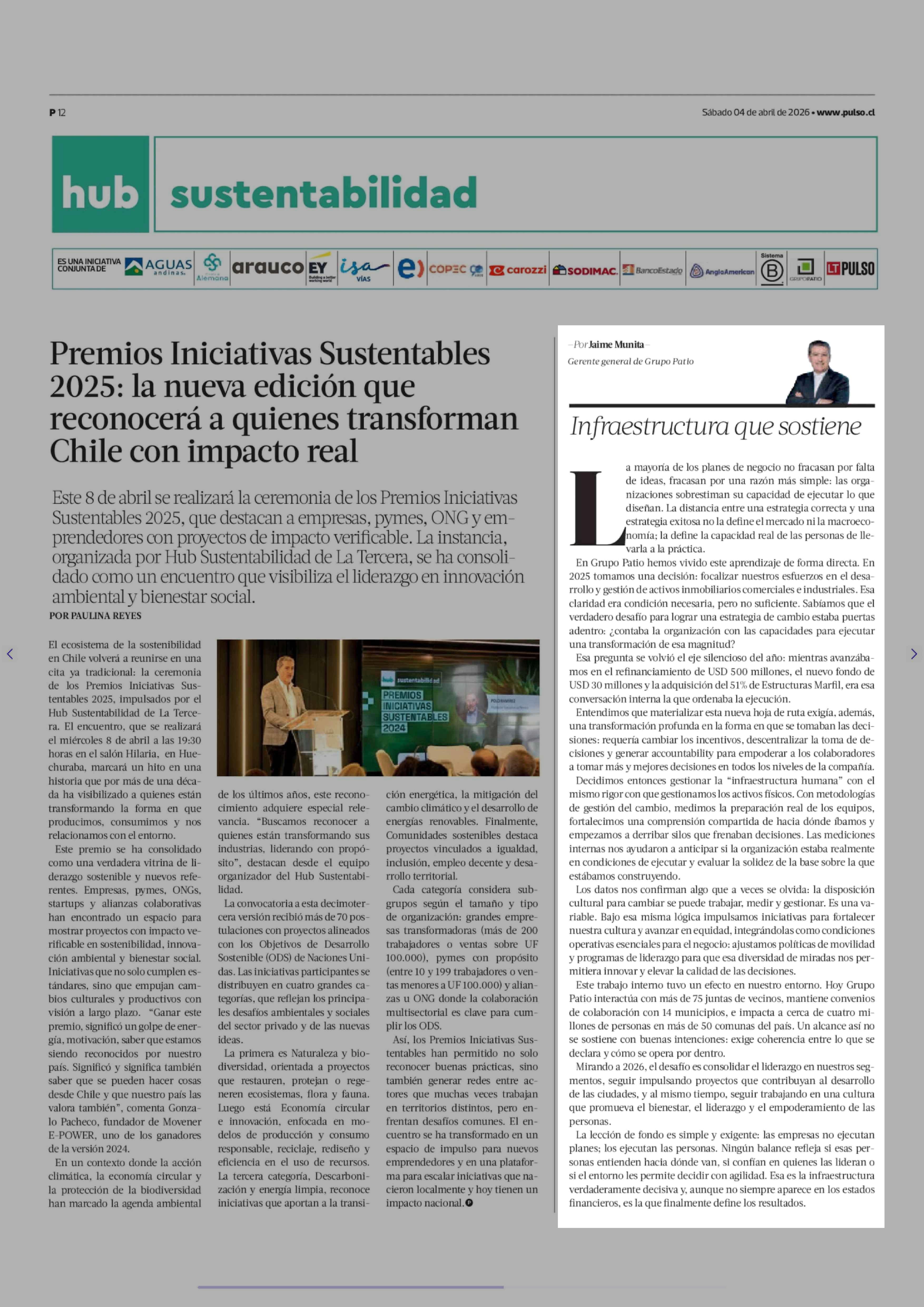 Columnas de Opinión: Infraestructura que sostiene 04-04-2026 La Tercera |