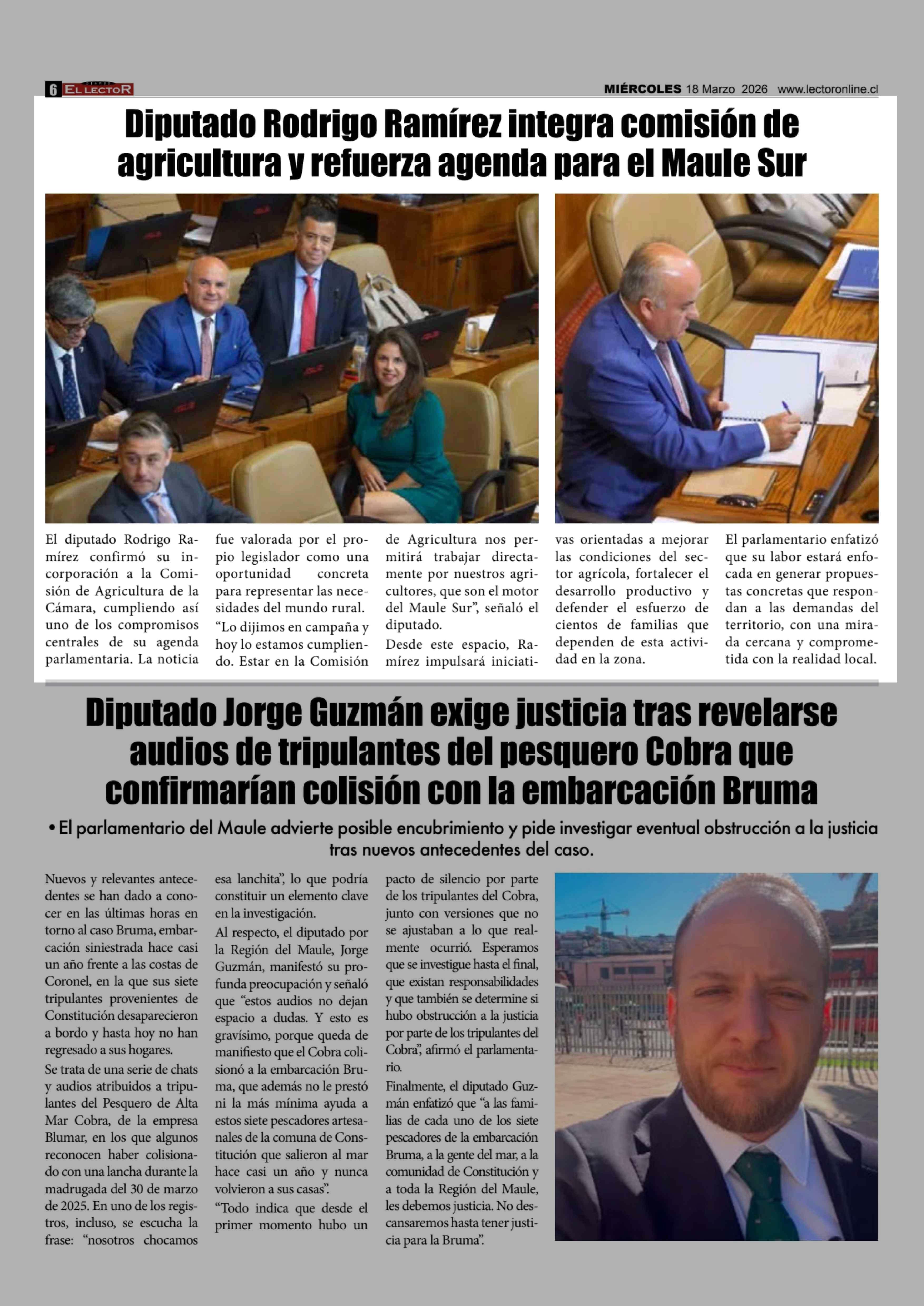 Diputado Rodrigo Ramírez integra comisión de agricultura y refuerza agenda para el Maule Sur 18-03-2026 El Lector |