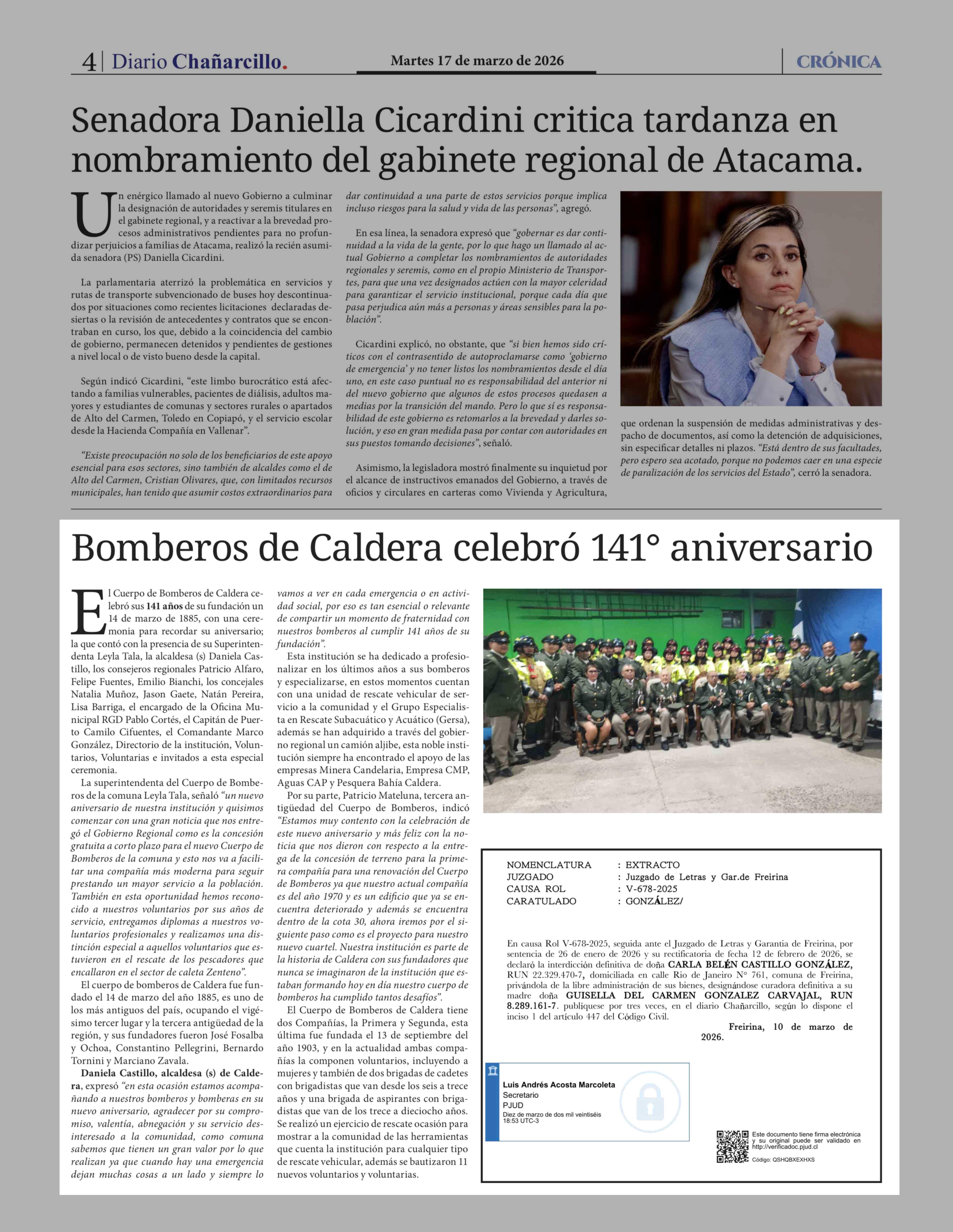 | Fecha: | 17-03-2026 | Sector: | Noticia general | Región: | Región de Atacama |