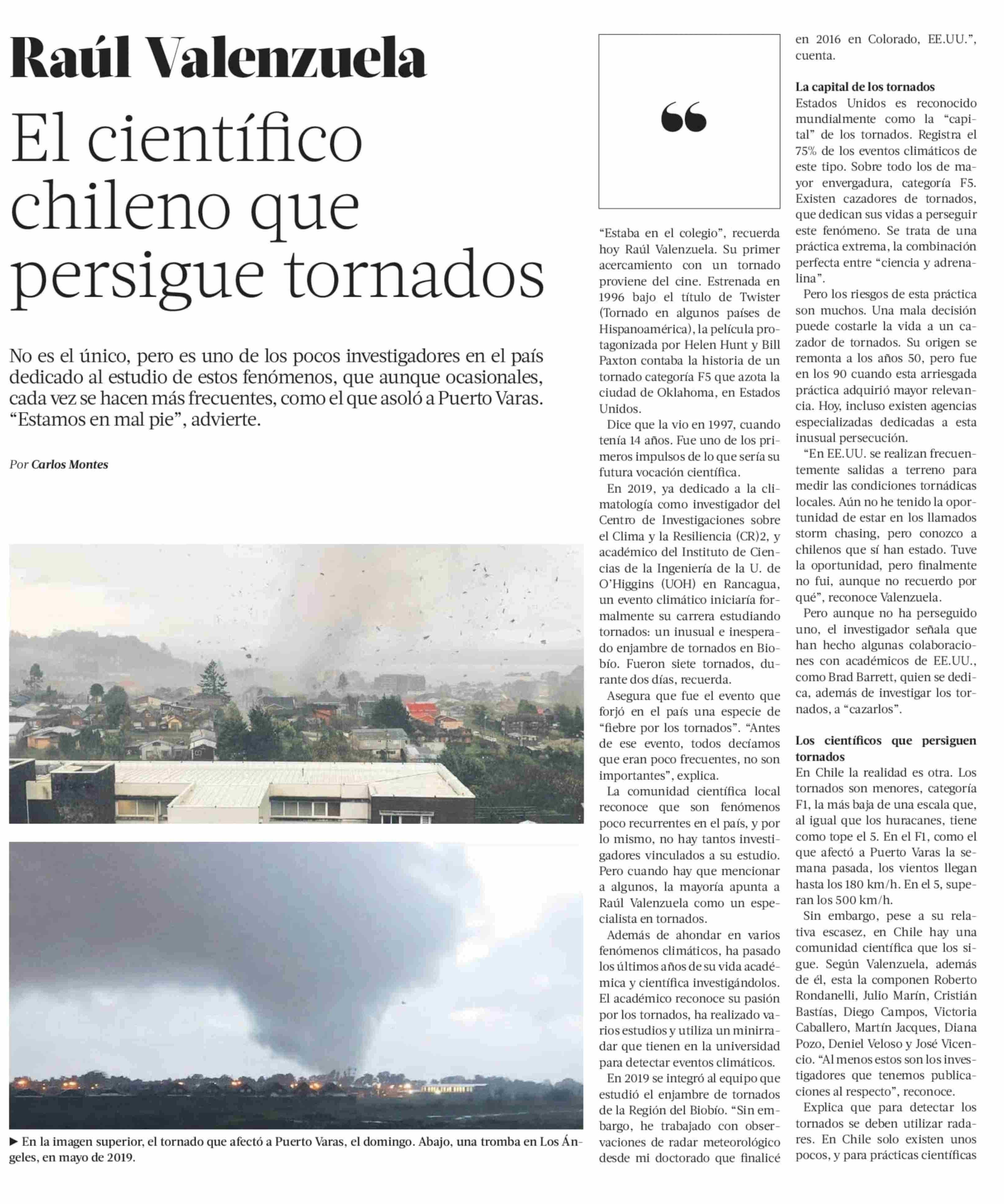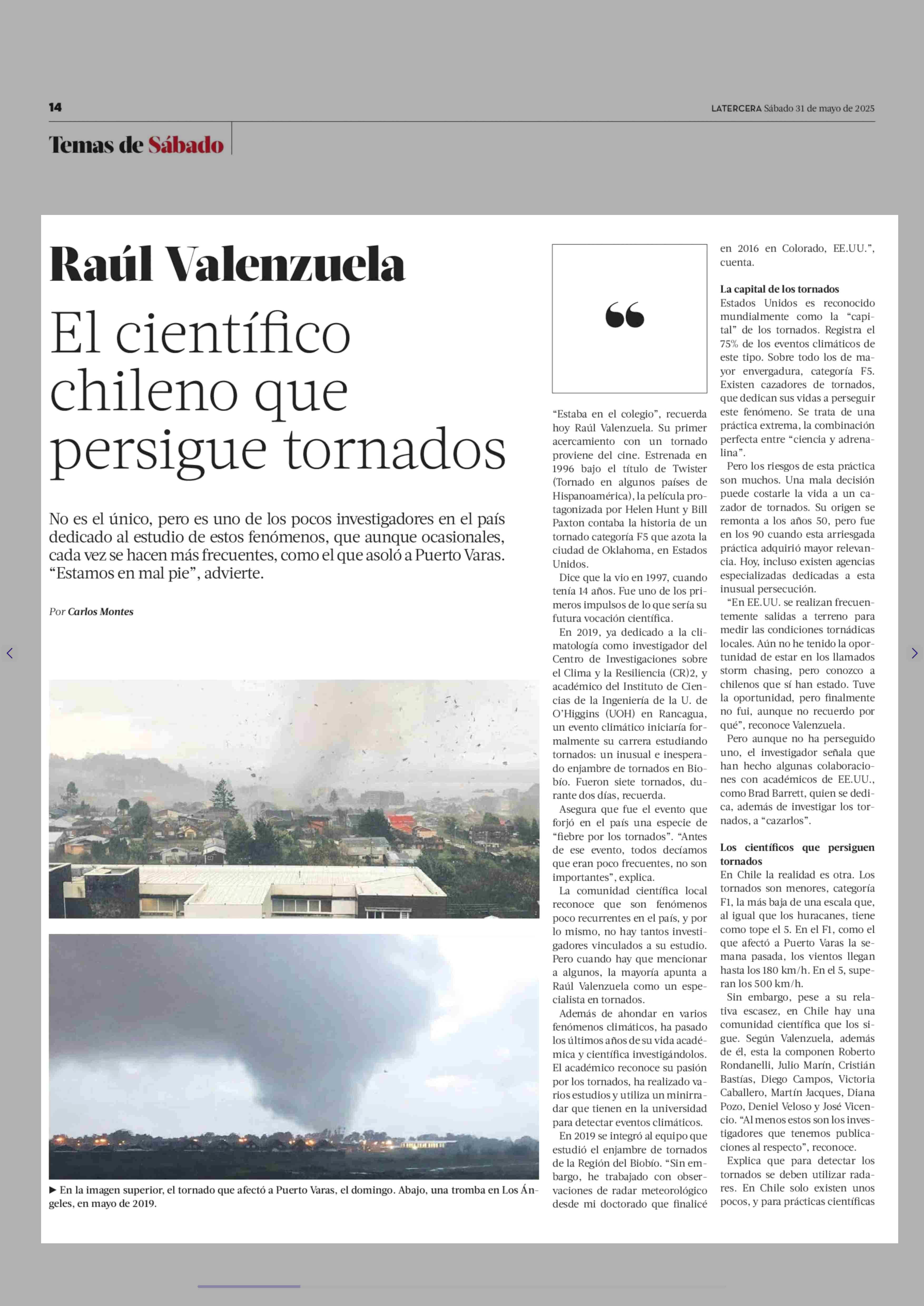Raúl Valenzuela El científico chileno que persigue tornados 31-05-2025 La Tercera |