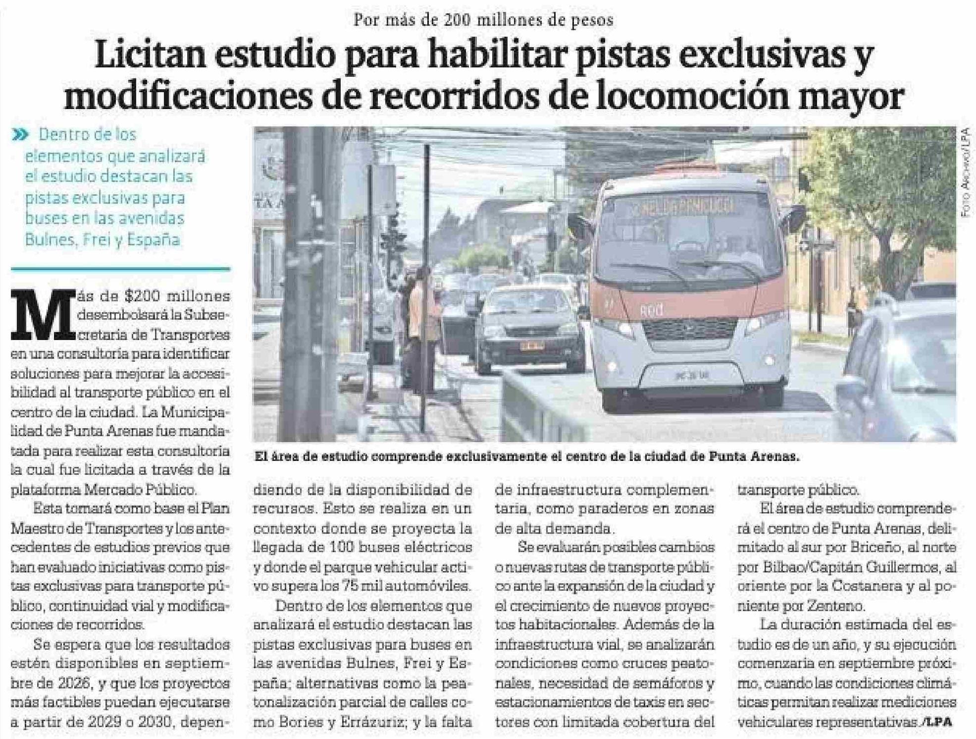 Licitan estudio para habilitar pistas exclusivas y modificaciones de recorridos de locomoción mayor 09-06-2025 La Prensa Austral |