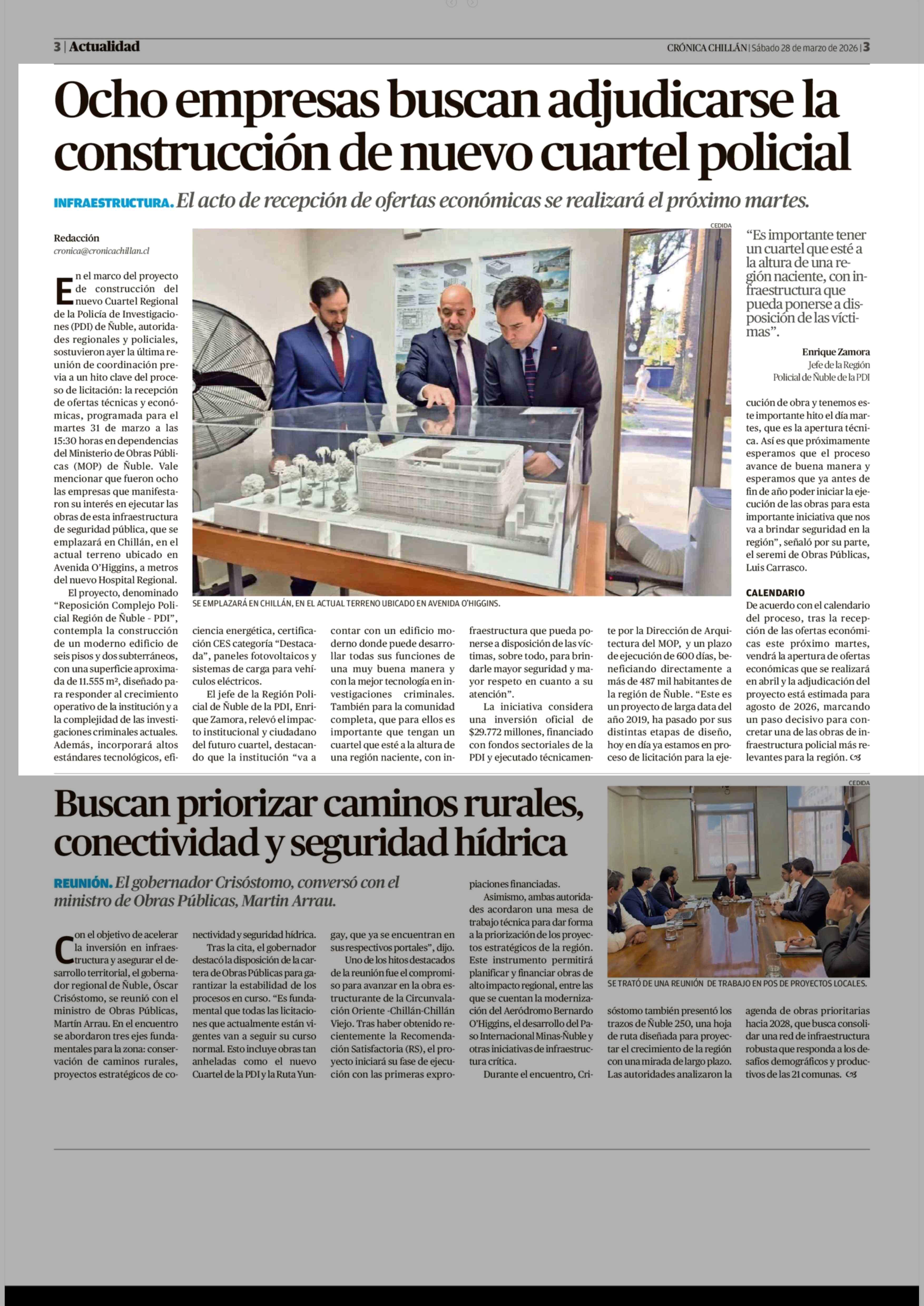Ocho empresas buscan adjudicarse la construcción de nuevo cuartel policial 28-03-2026 Crónica de Chillán |