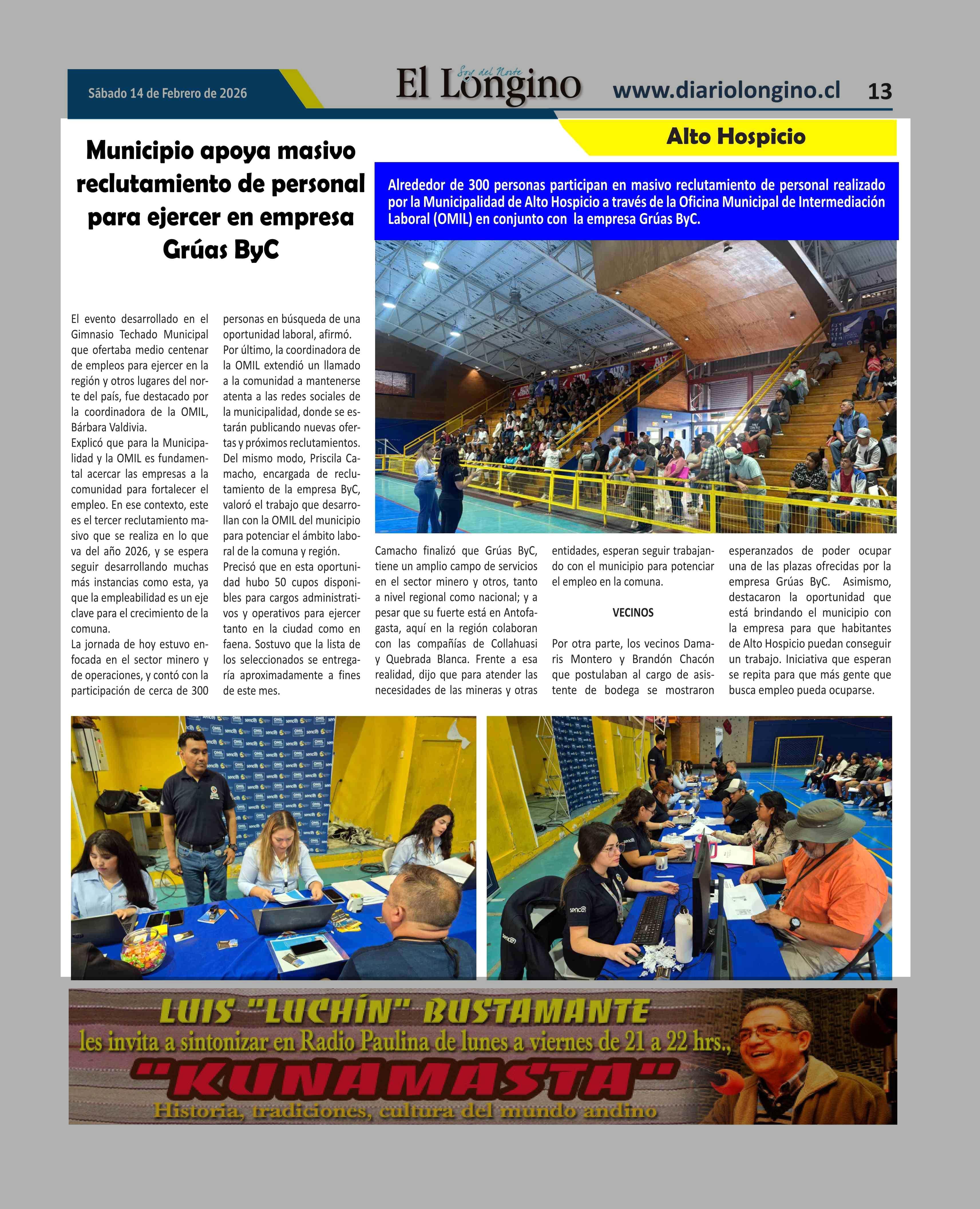 Fecha: 14-02-2026 Sector: Noticia general Región: Región de Tarapacá