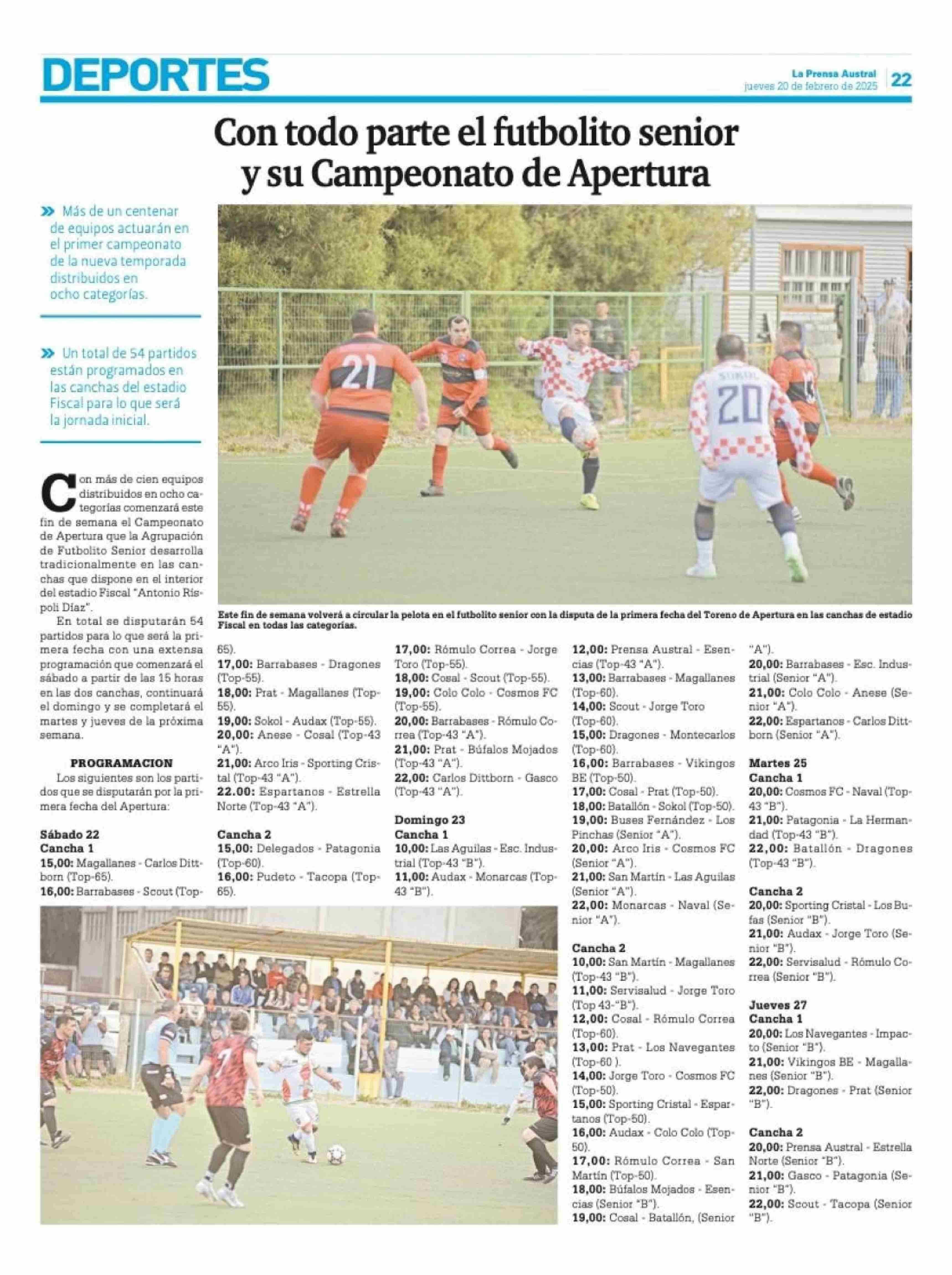 Con todo parte el futbolito senior y su Campeonato de Apertura 20-02-2025 La Prensa Austral |