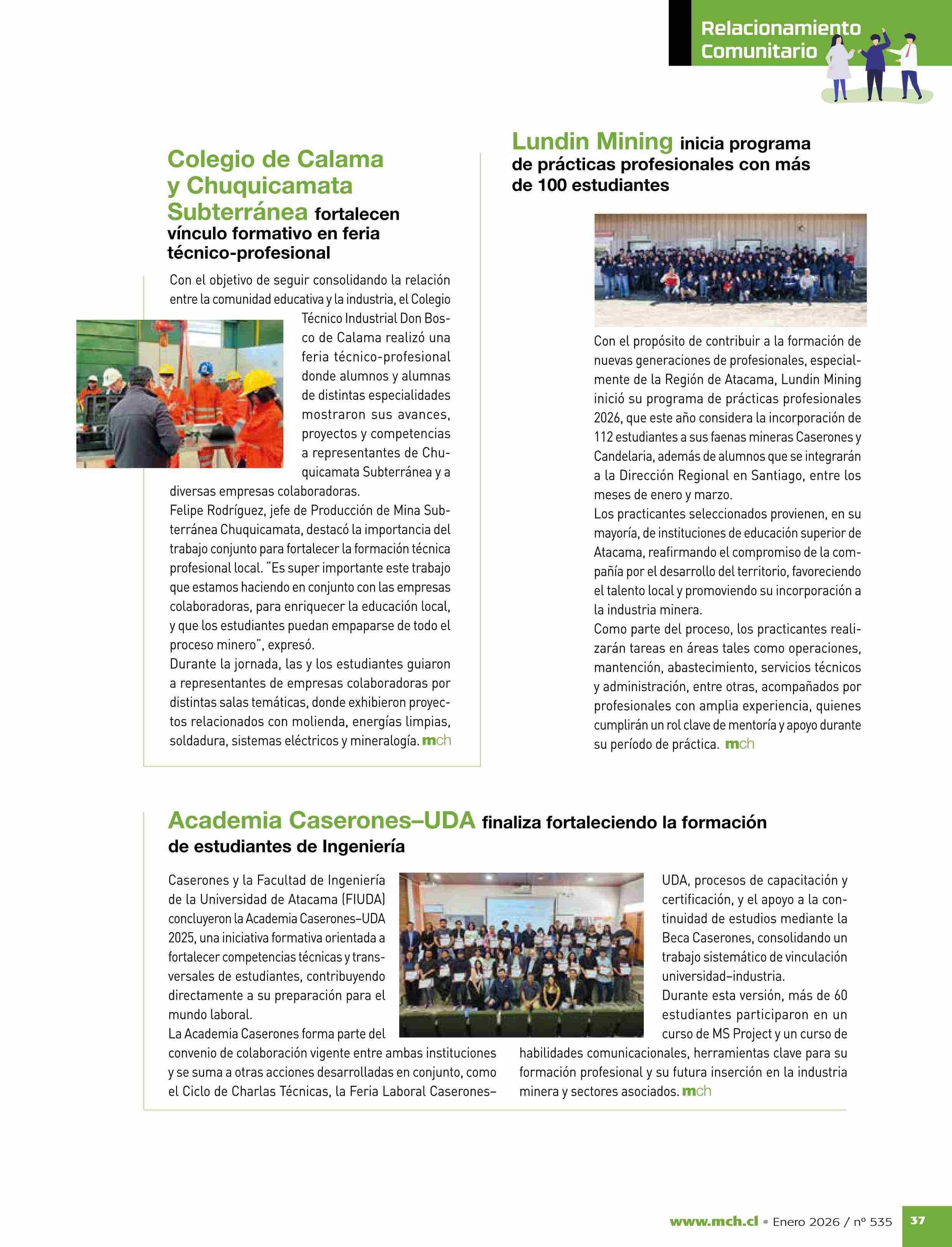 Academia Caserones-UDA finaliza fortaleciendo la formación de estudiantes de Ingeniería 23-01-2026 Revista Minería Chilena |