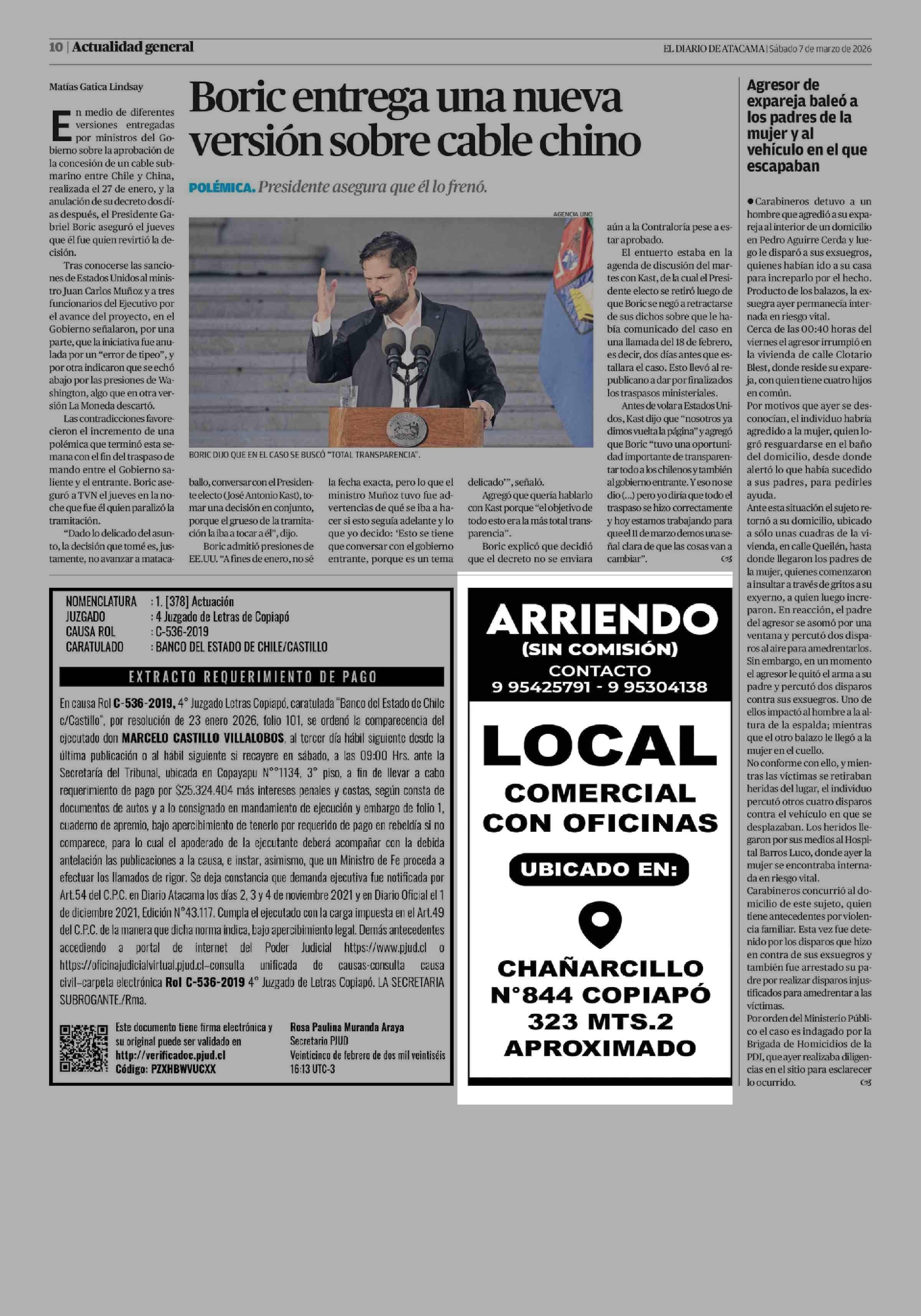 AVISO INMOBILIARIO: COMERCIAL CON OFICINAS N*844 COPIAPÓ 323 MTS.2 APROXIMADO APROXIMADO APROXIMADO APROXIMADO 07-03-2026 El Diario de Atacama |