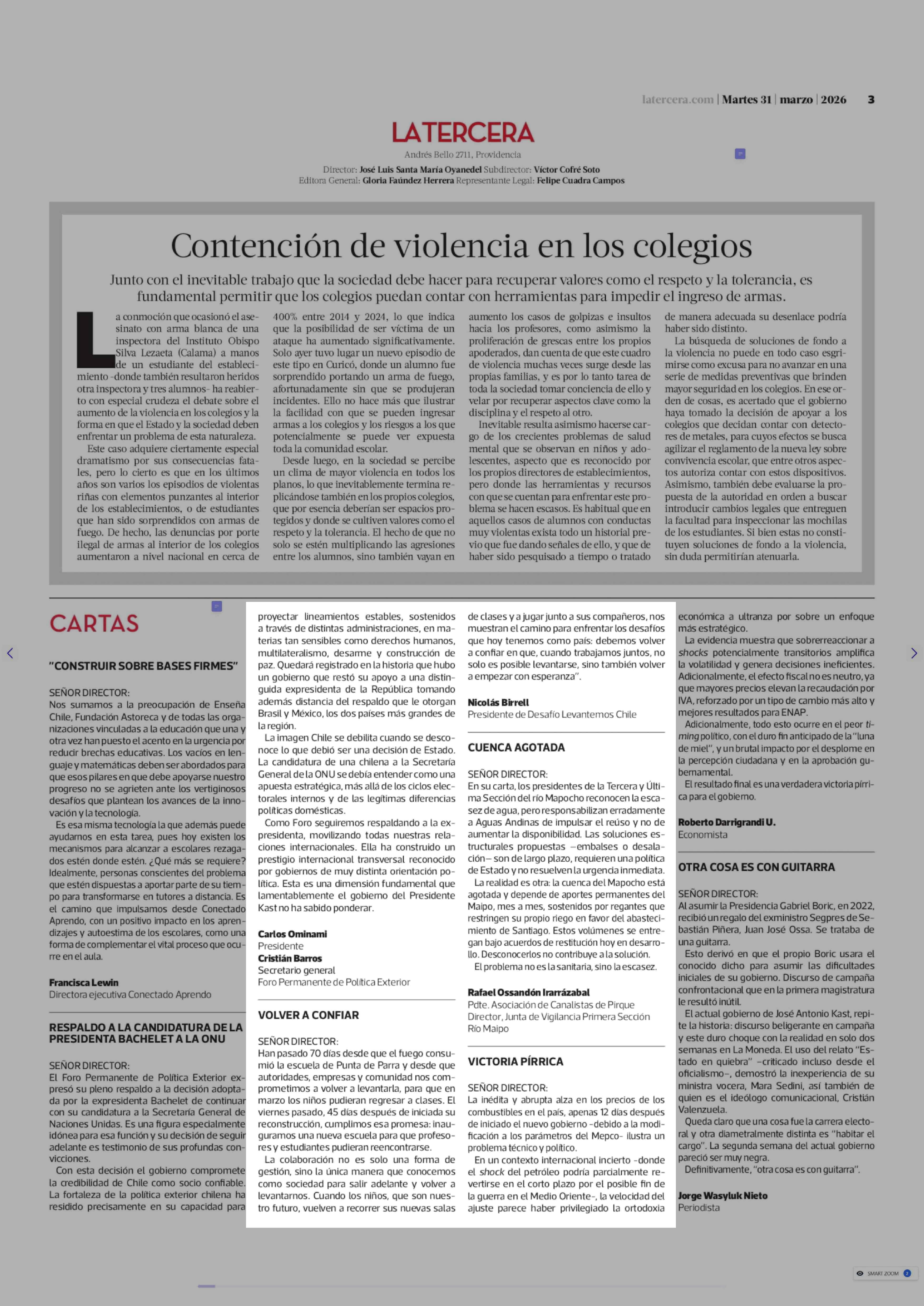 Cartas: VOLVER A CONFIAR 31-03-2026 La Tercera |