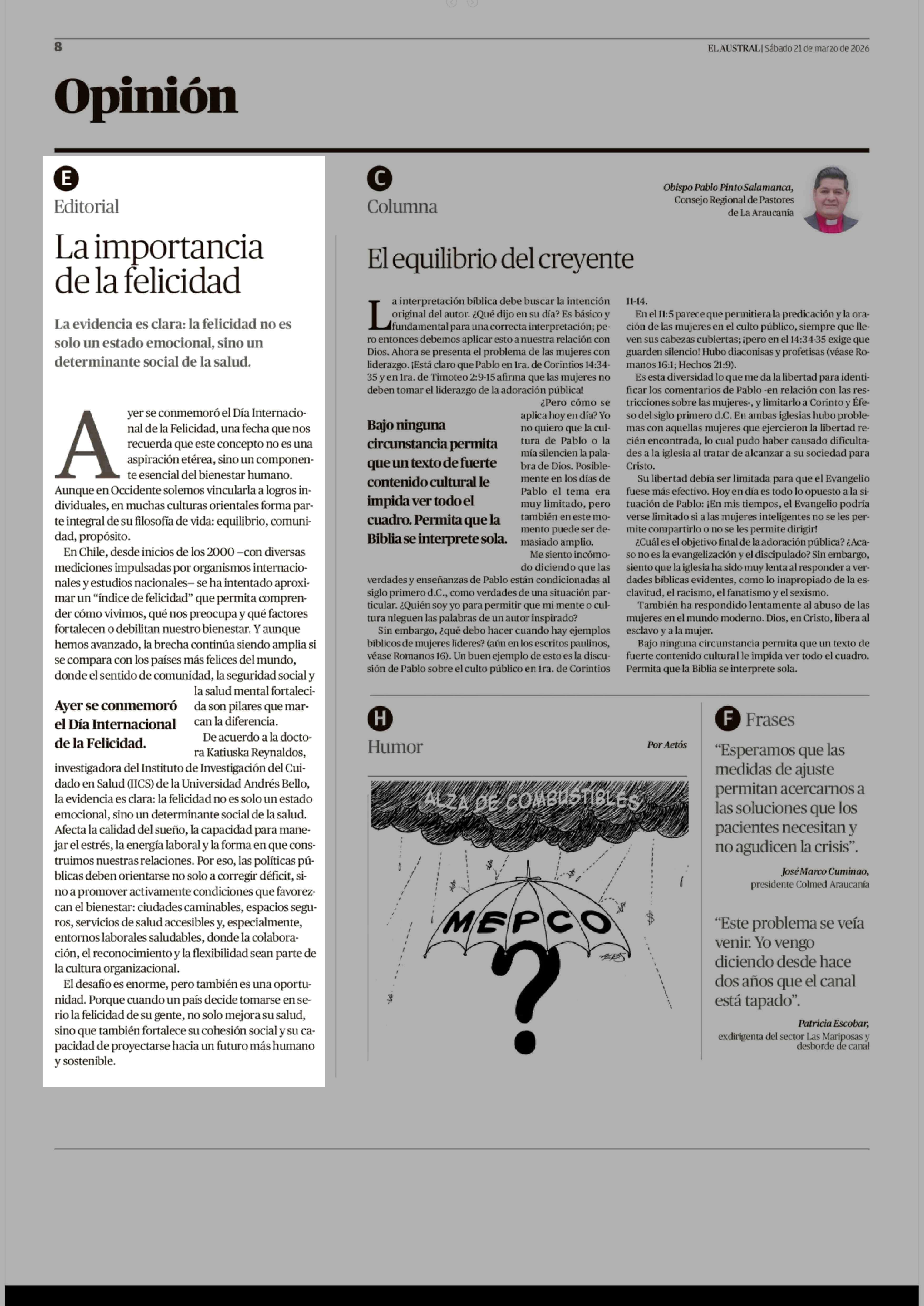 Fecha: 21-03-2026 Sector: Editorial Región: Región de la Araucanía